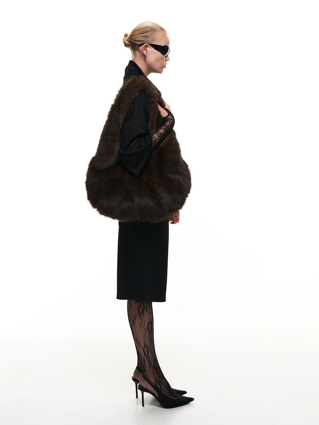 Τσάντα Γούνινη Σοκολά Με Επένδυση “LUMINA”