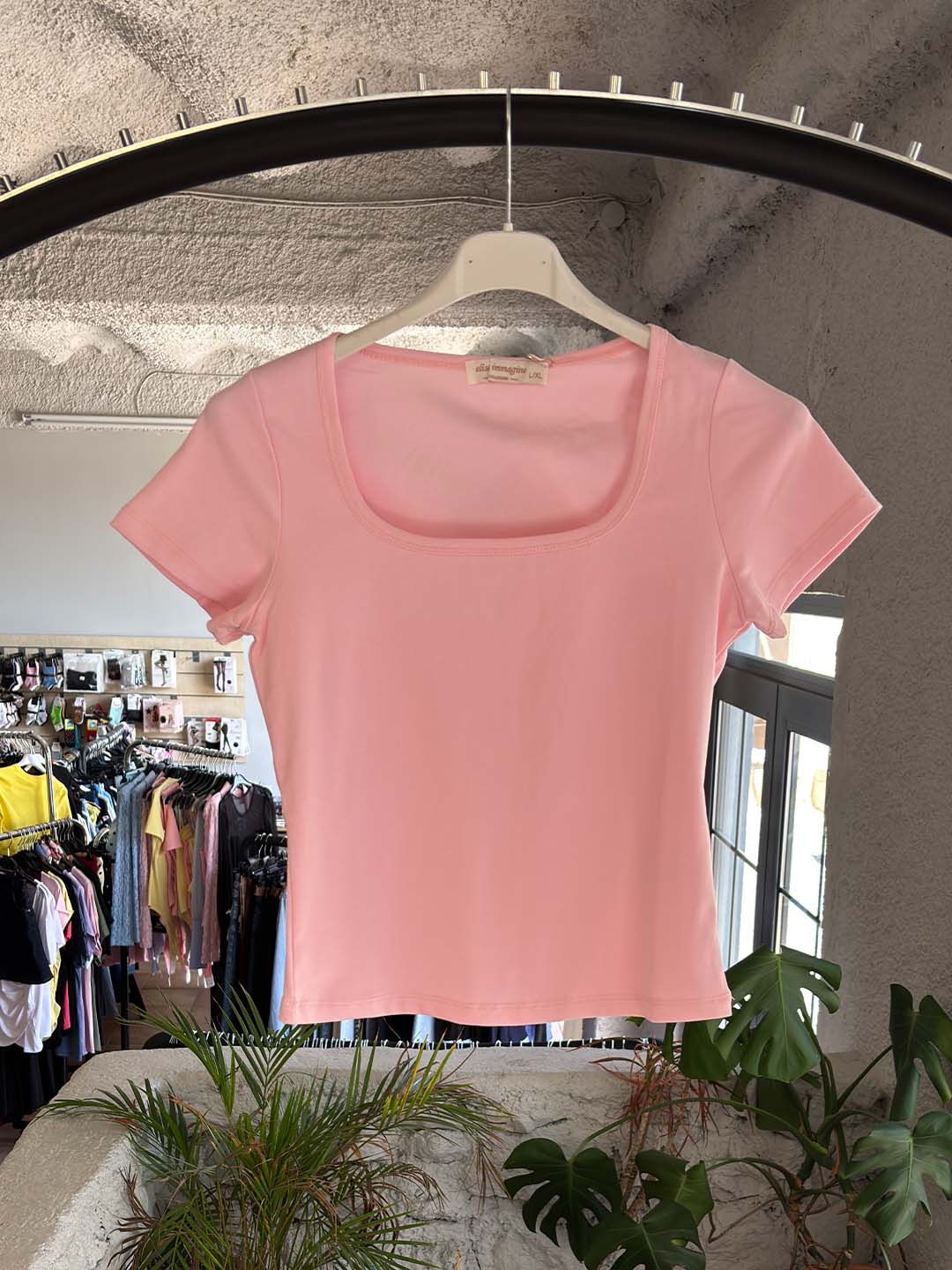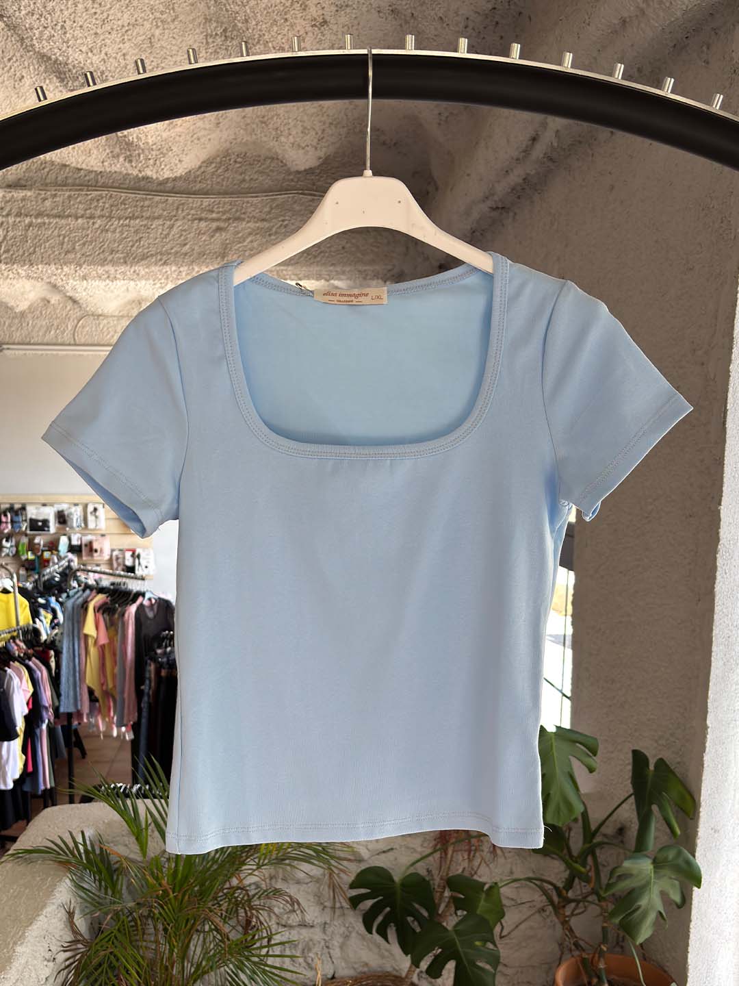 Basic Κοντομάνικο T-Shirt με Τετράγωνο Ντεκολτέ – 7 Χρώματα