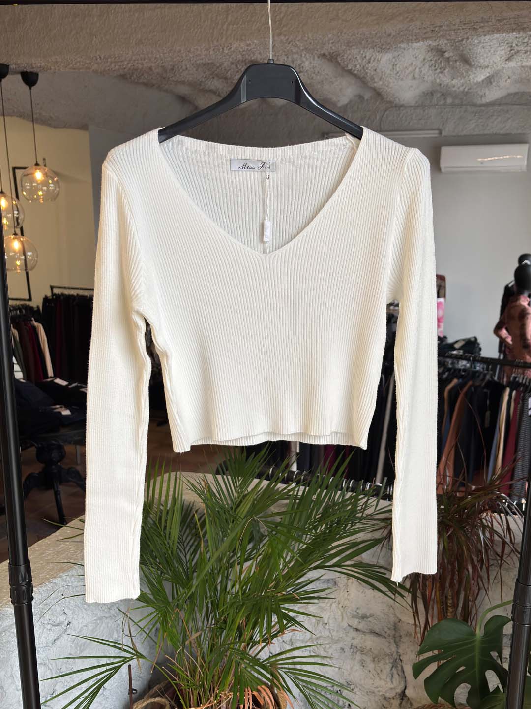 Μπλούζα Ριπ Crop Πλεκτή Σε Λευκό