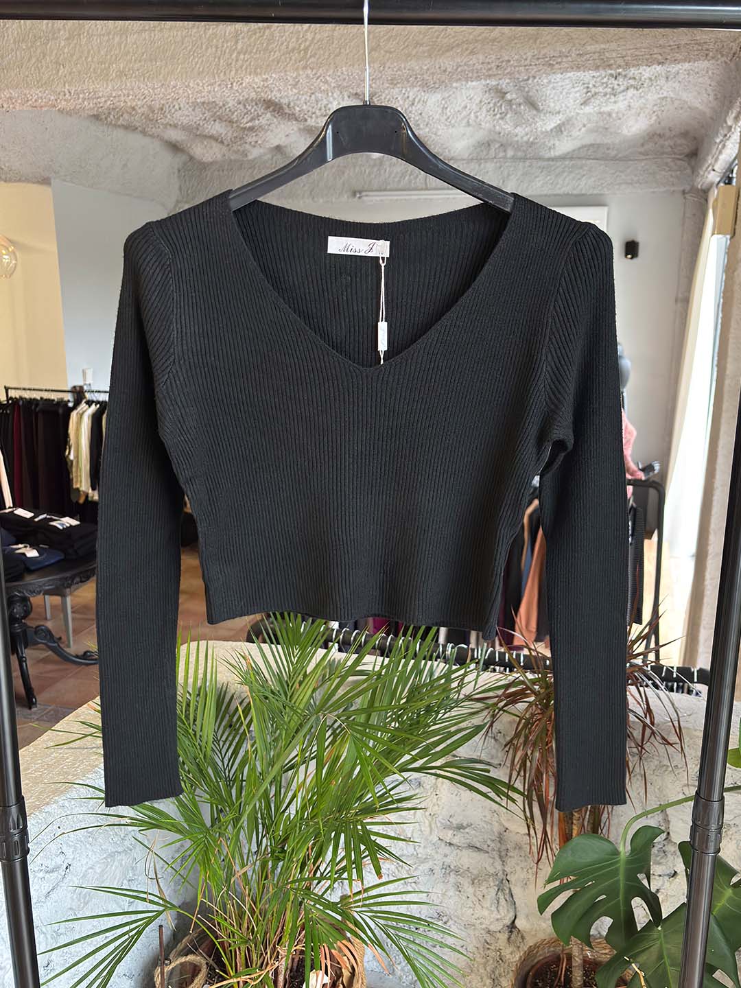 Μπλούζα Ριπ Crop Πλεκτή Σε Μαύρο