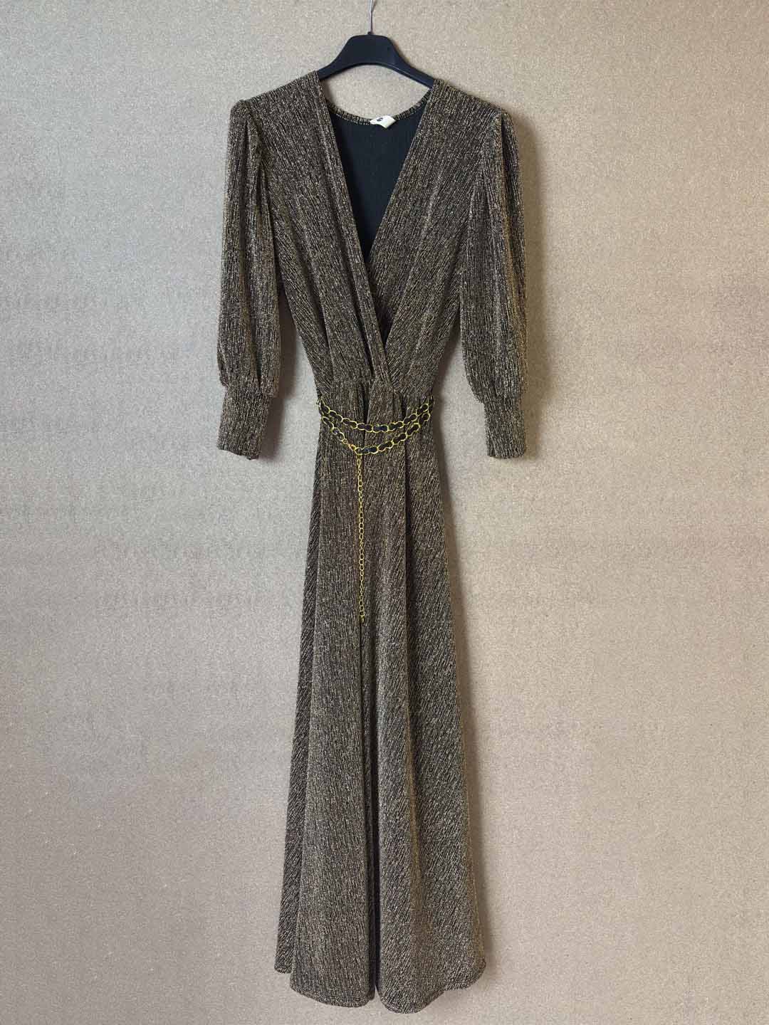 Φόρεμα Maxi Κρουαζέ Λούρεξ Χρυσό Με Ζώνη