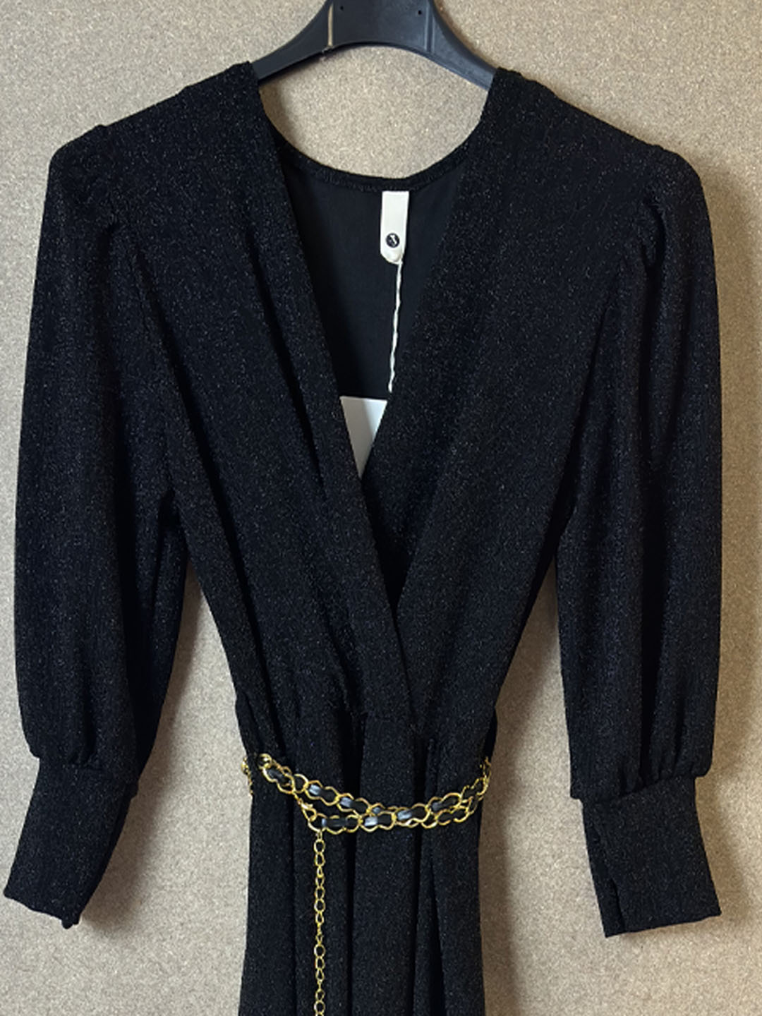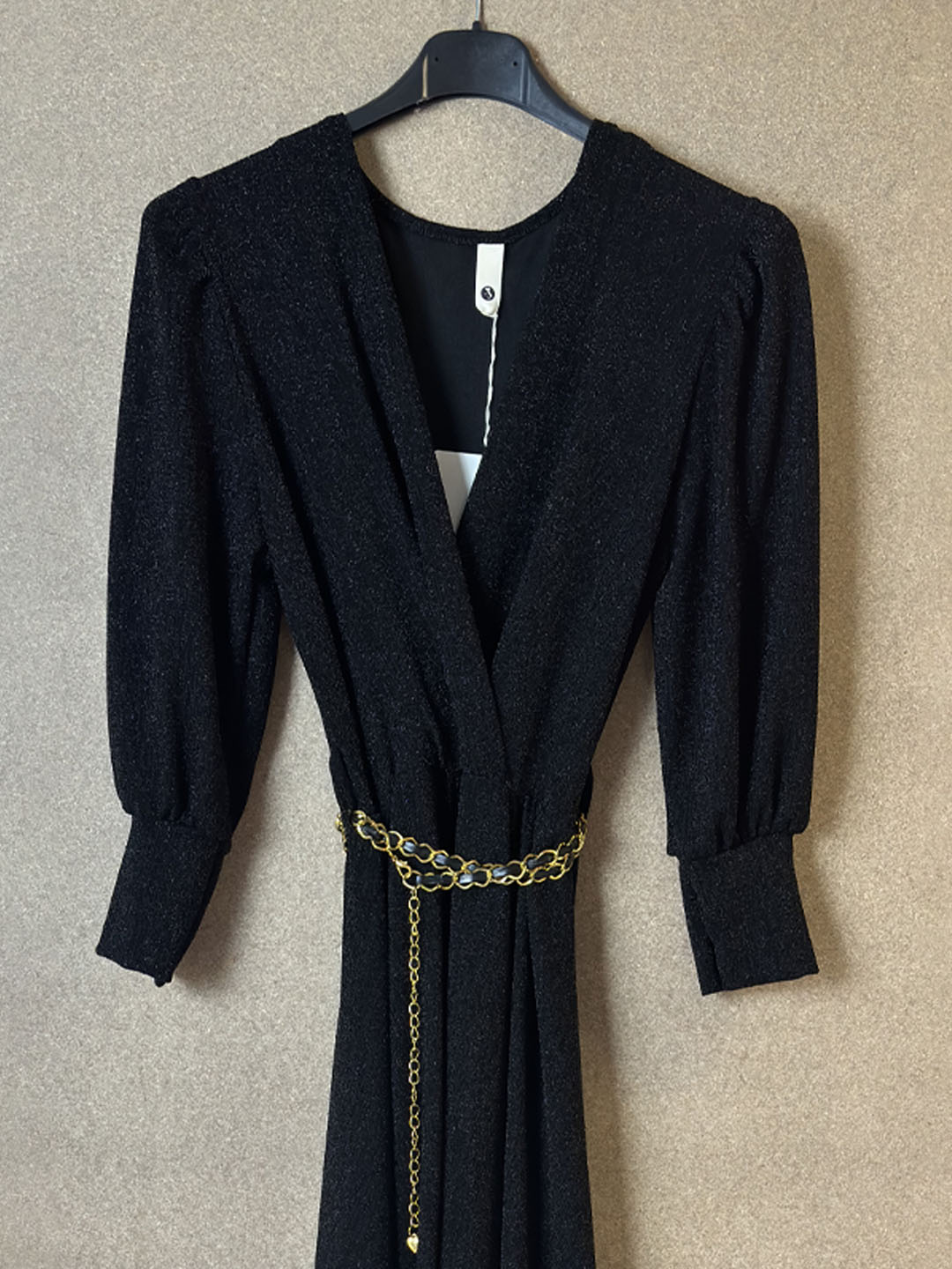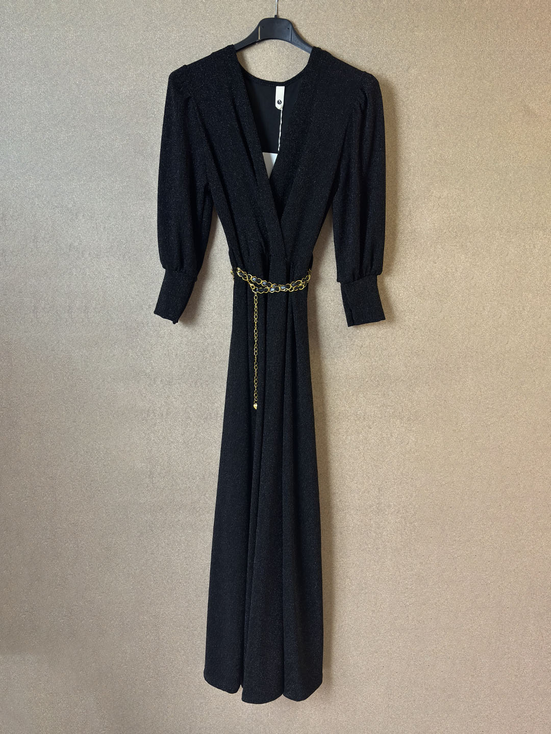 Φόρεμα Maxi Κρουαζέ Λούρεξ Μαύρο Με Ζώνη