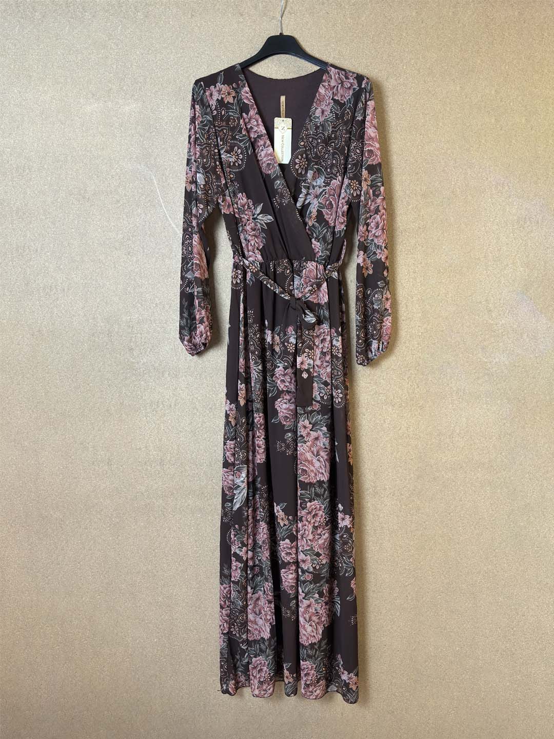 Φόρεμα Maxi Σοκολά Φλοράλ Με Τριαντάφυλλο