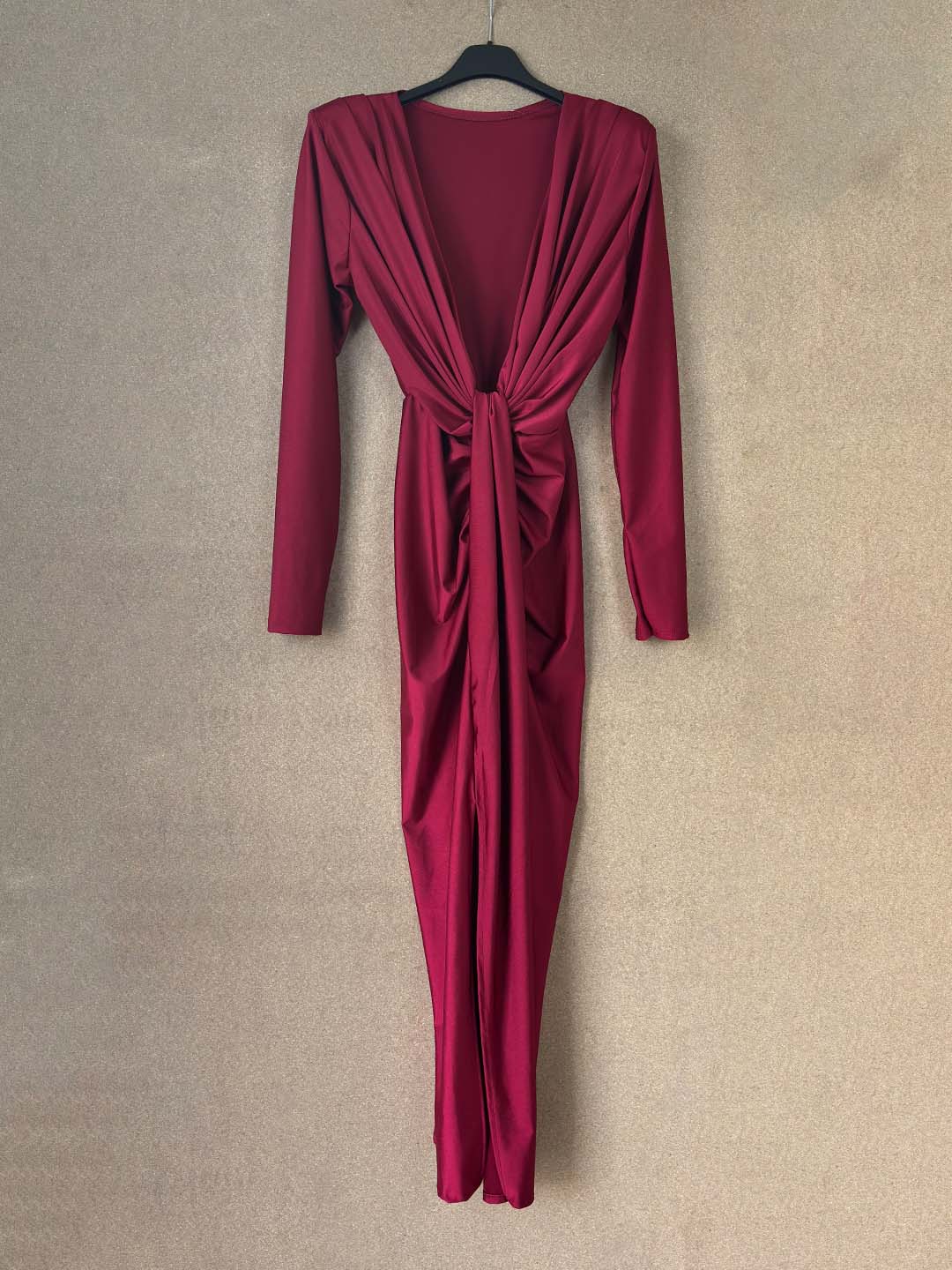 Φόρεμα Midi Με Σούρες Κόμπο Και Βάτες