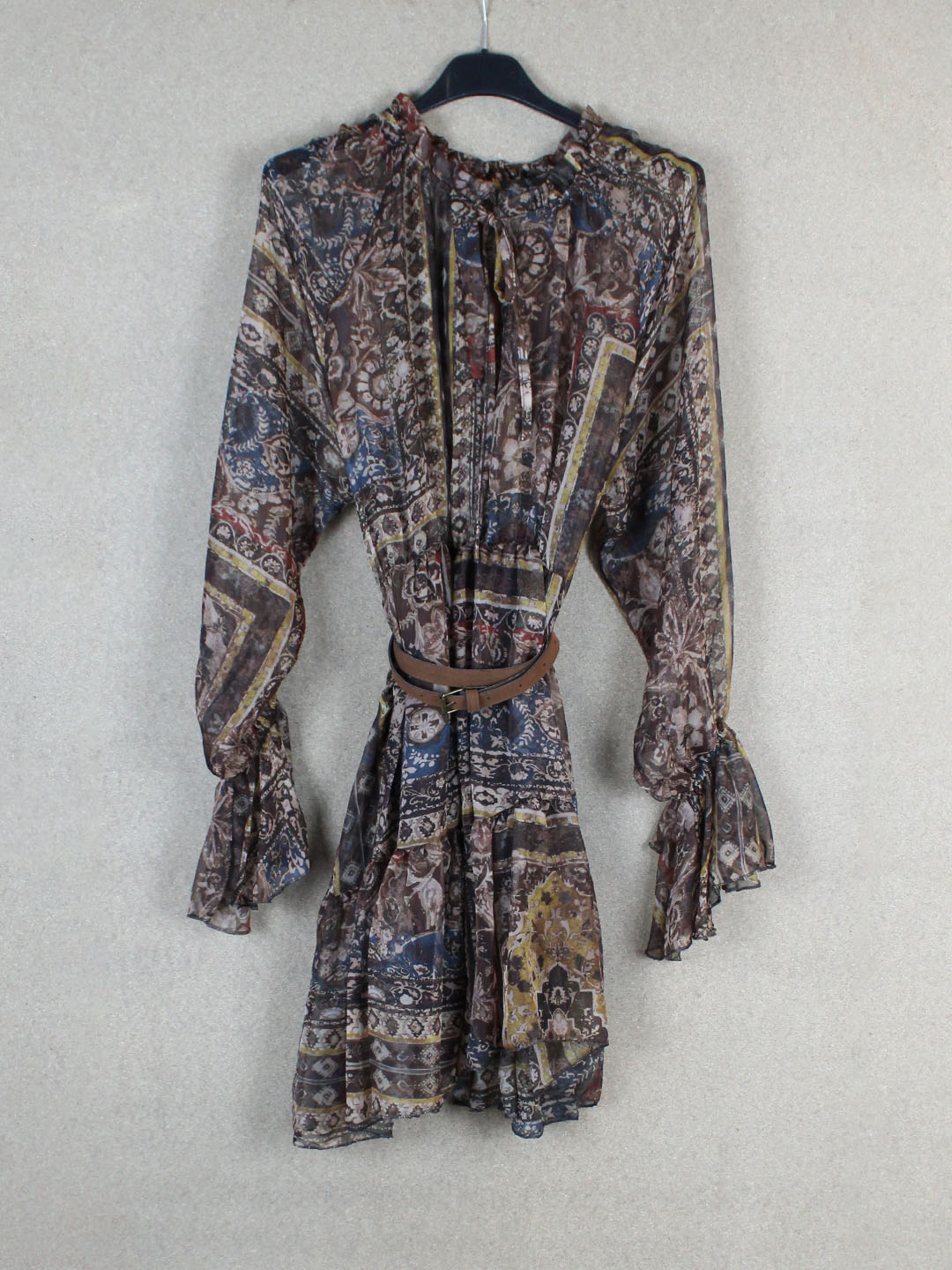Φόρεμα Mini Μουσελίνα Σε Καφέ Απόχρωση Με Ζώνη