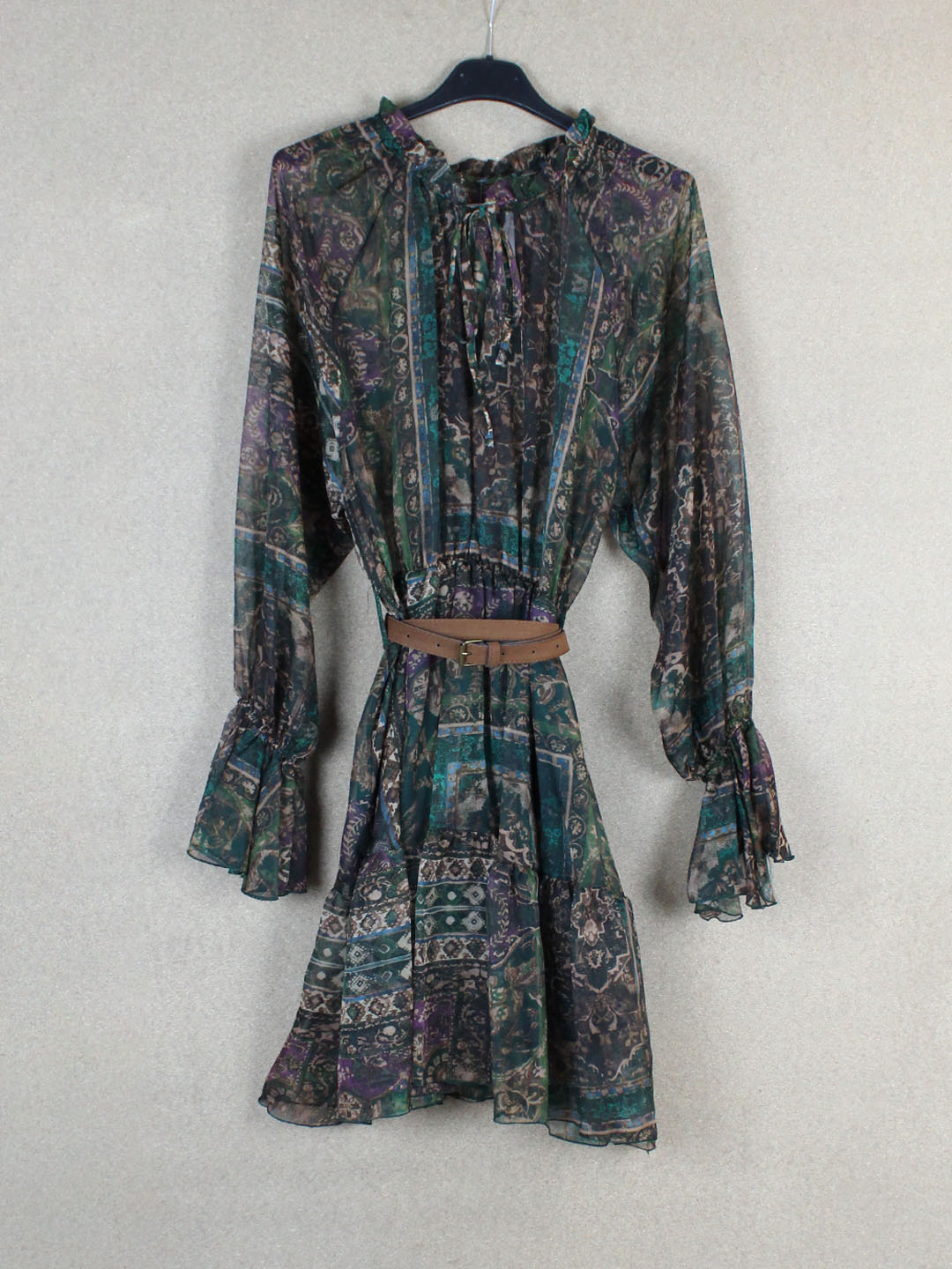 Φόρεμα Mini Μουσελίνα Σε Πράσινη Απόχρωση Με Ζώνη