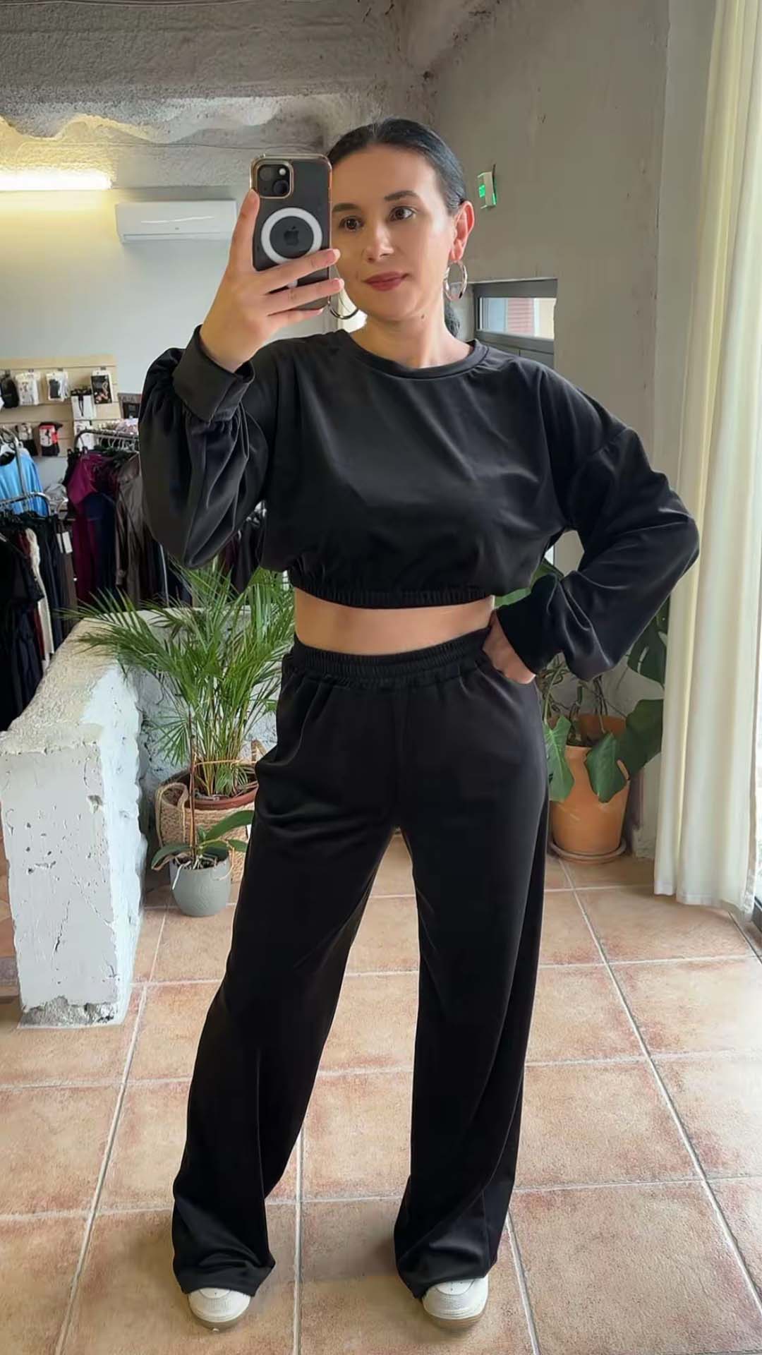 Σετ Φόρμες Μαύρο Βελουτέ Με Crop Μπλούζα