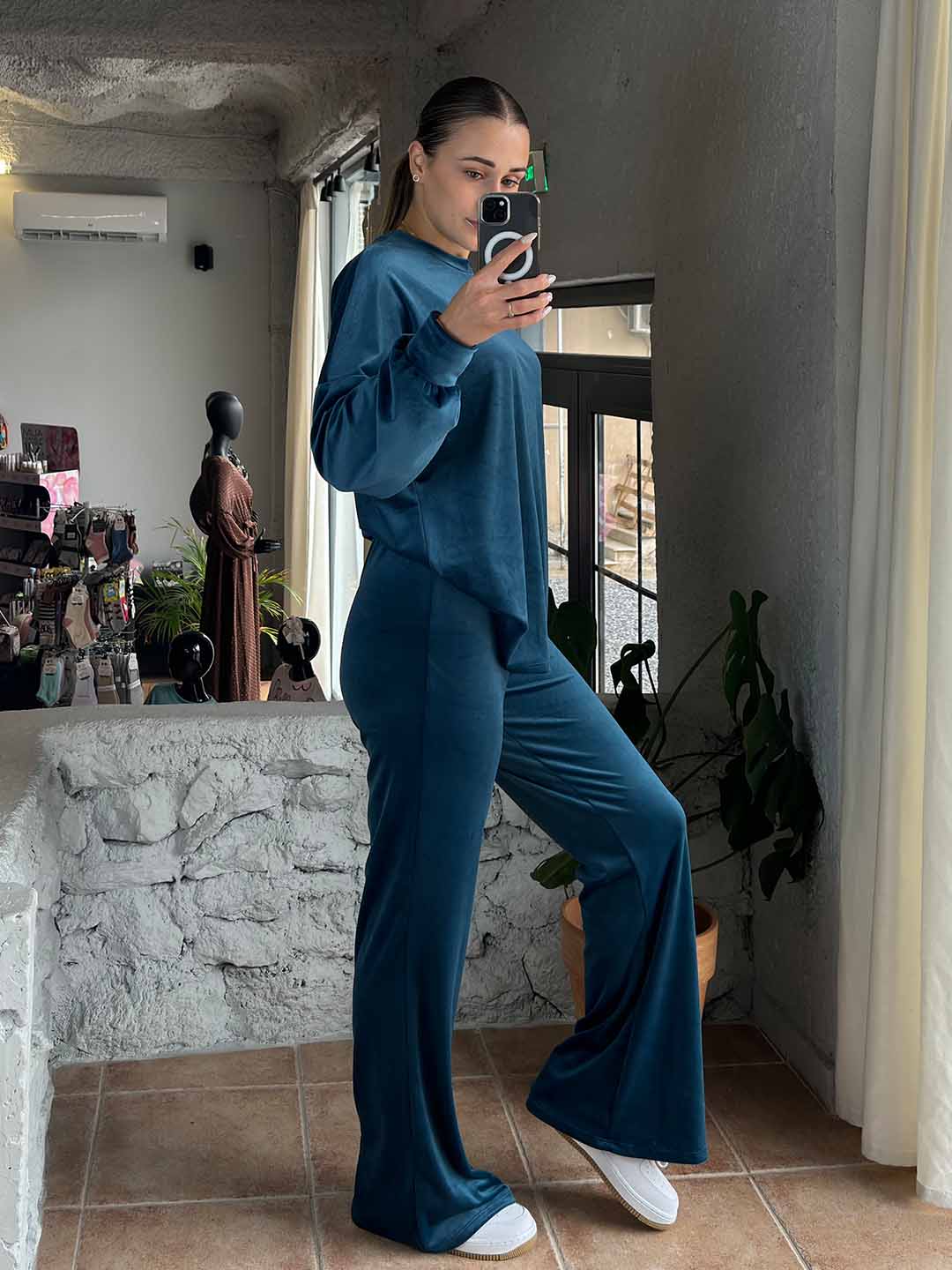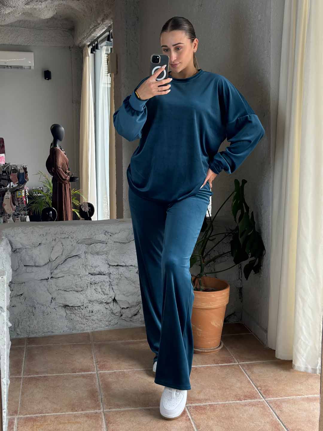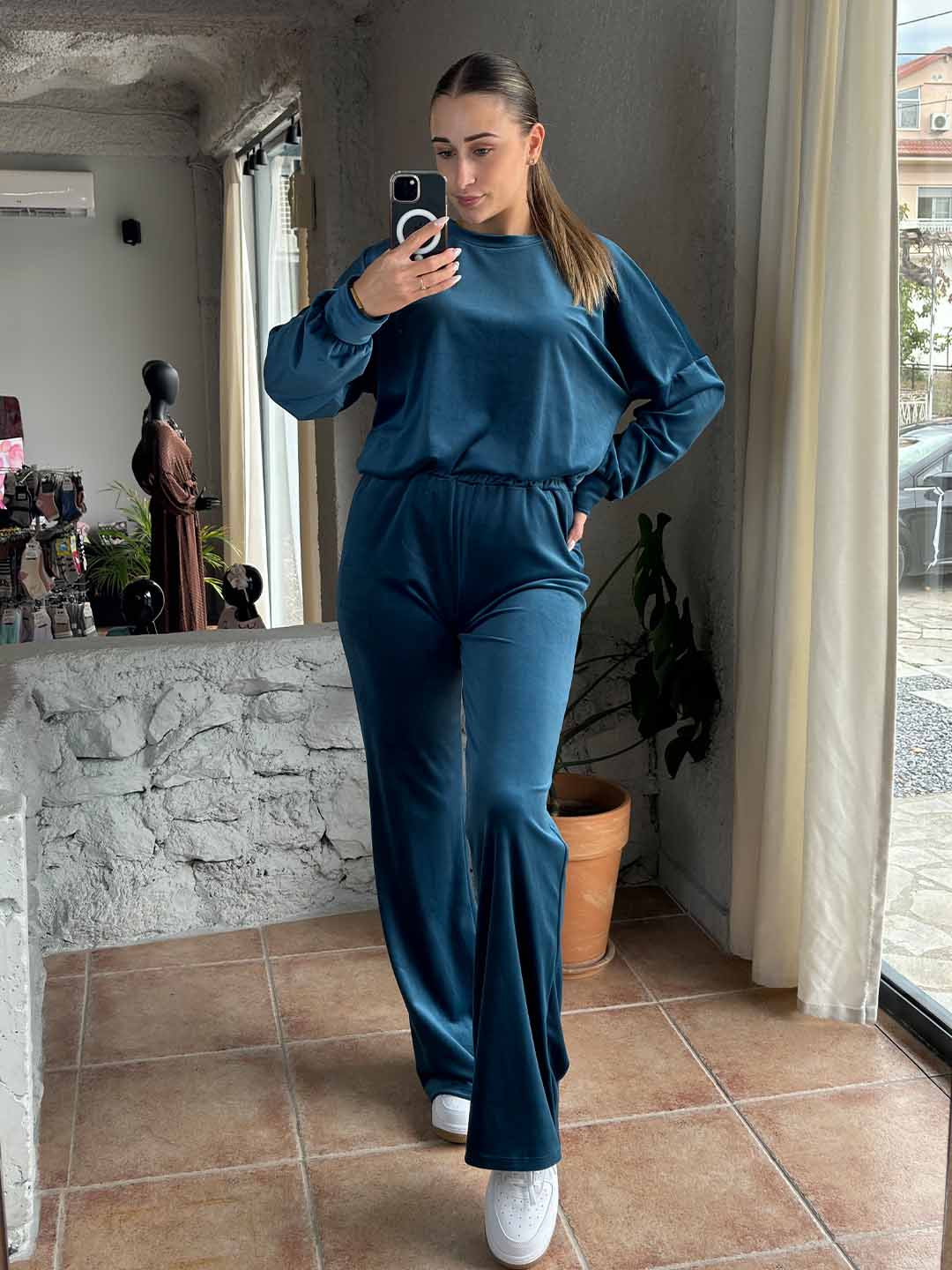Σετ Φόρμες Βελουτέ Μπλούζα Παντελόνι Πετρόλ