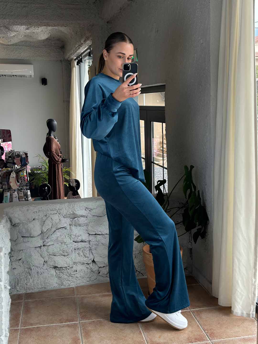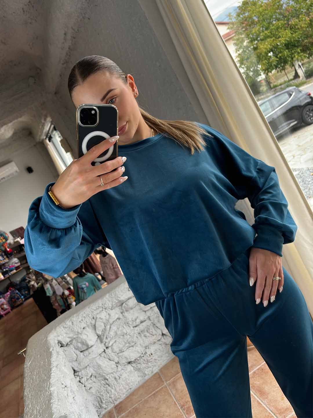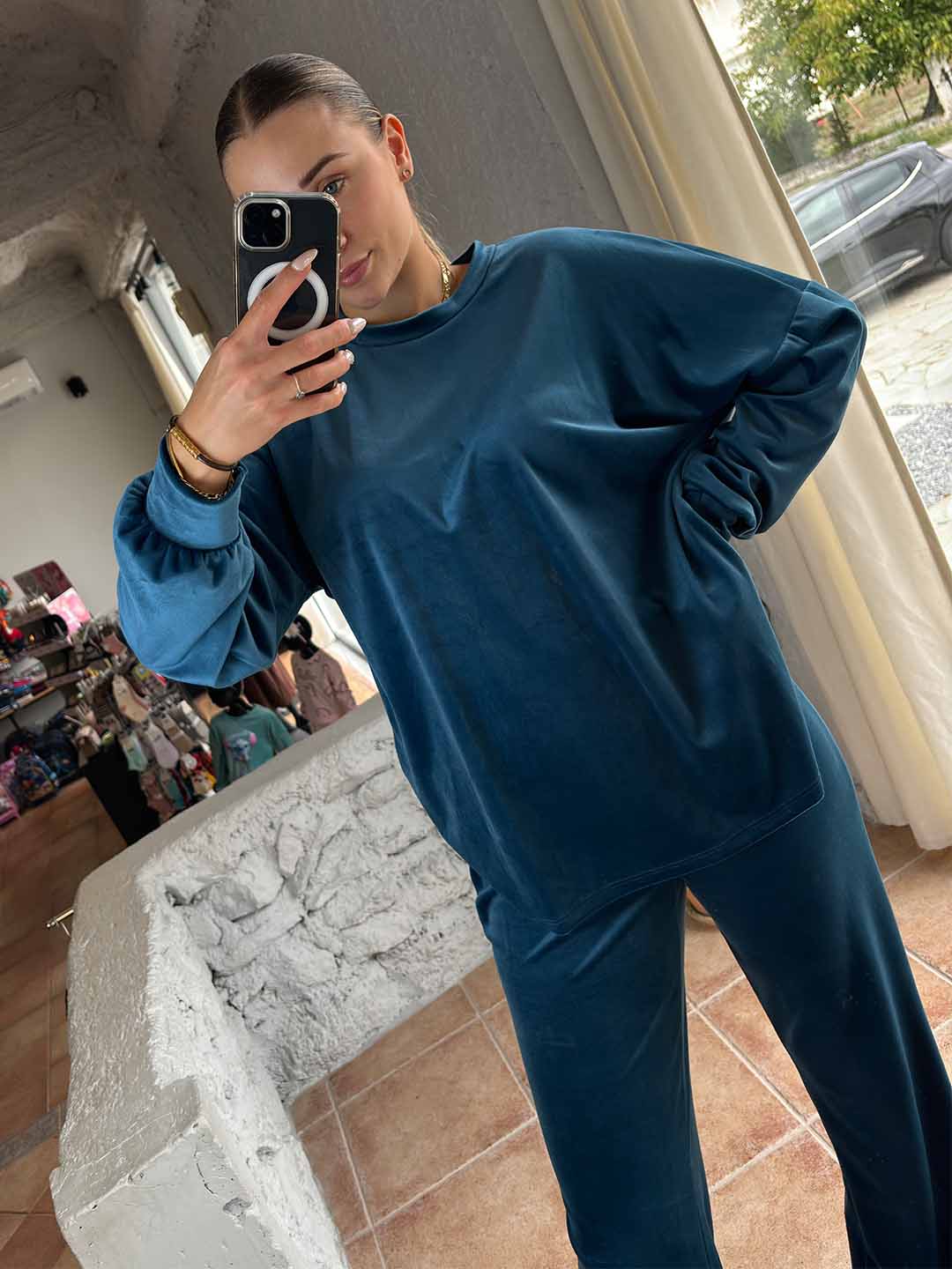 Σετ Φόρμες Βελουτέ Μπλούζα Παντελόνι Πετρόλ