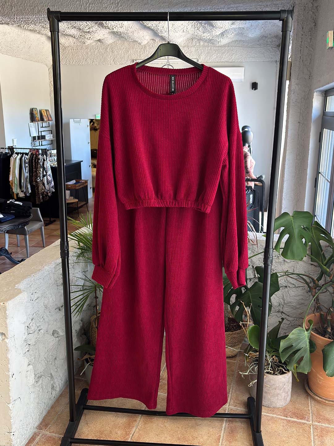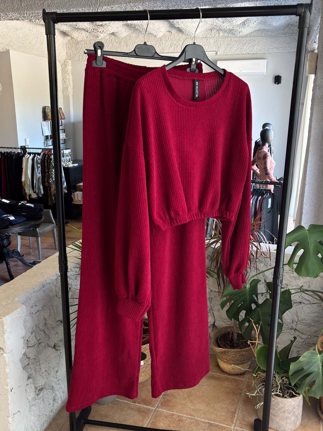Σετ Μπορντό Κοτλέ Φόρμες Με Crop Μπλούζα