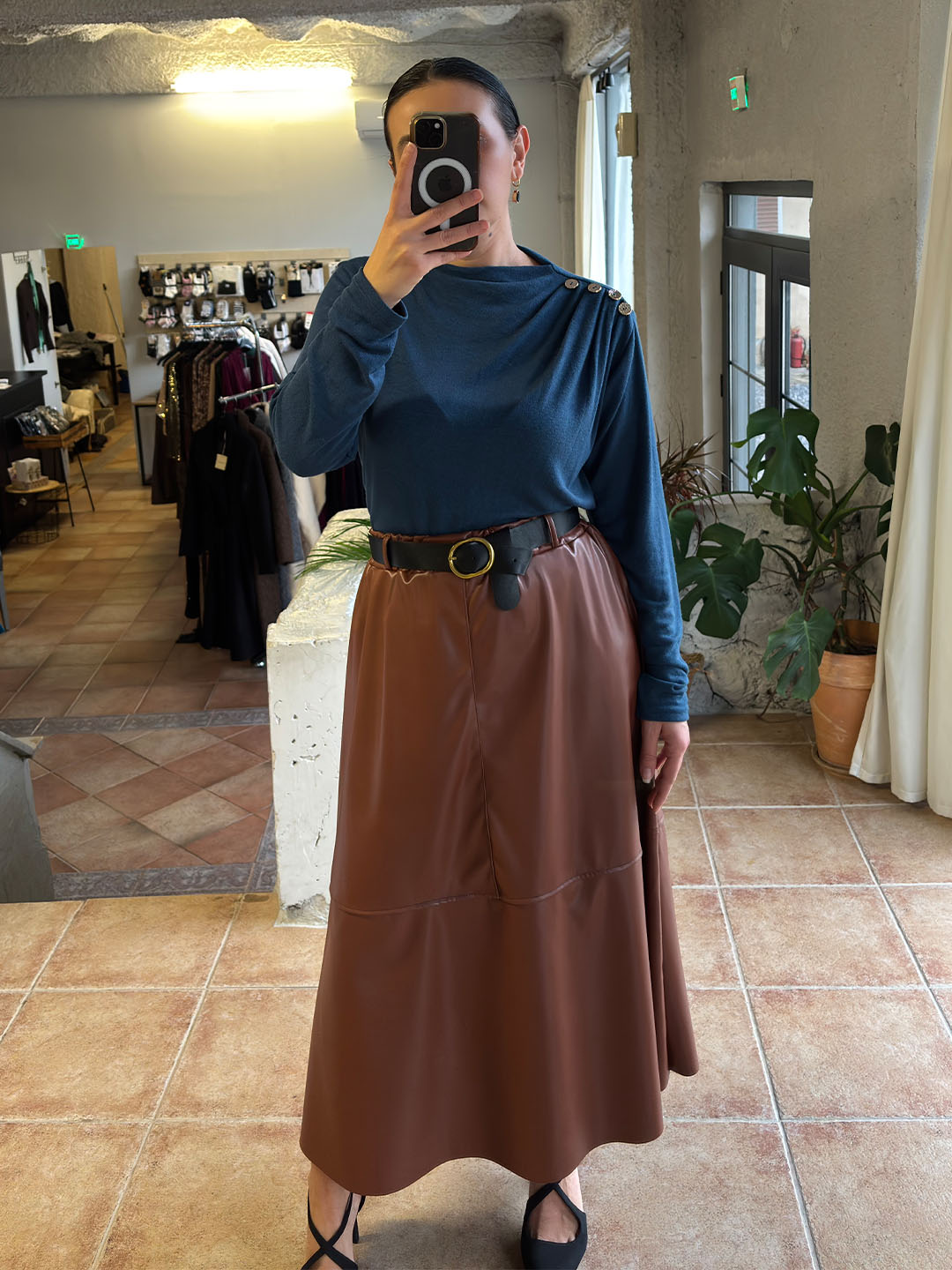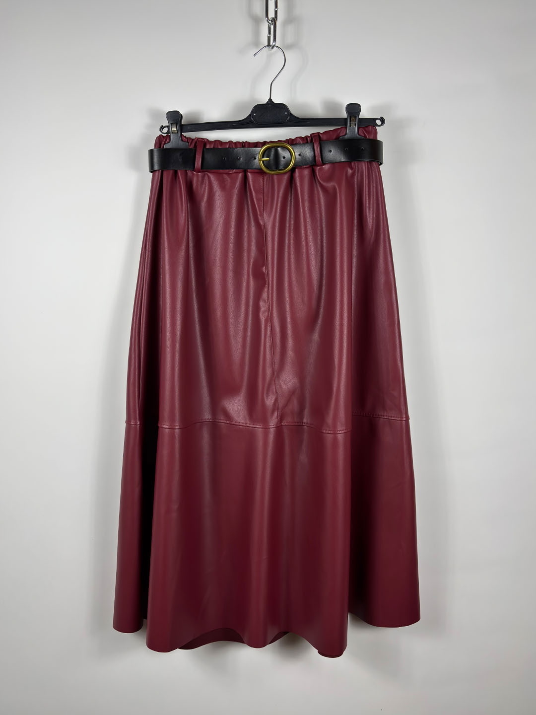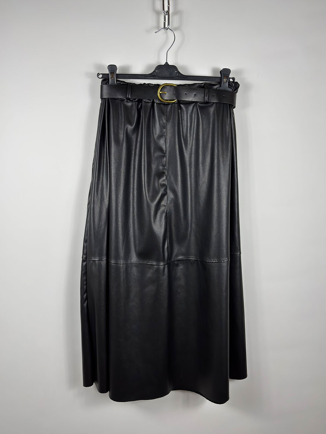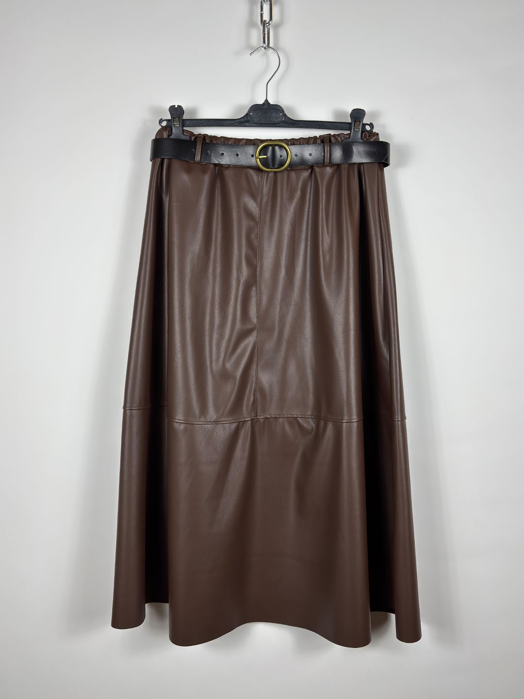 Φούστα Midi Κλος Δερματίνη Με Ζώνη