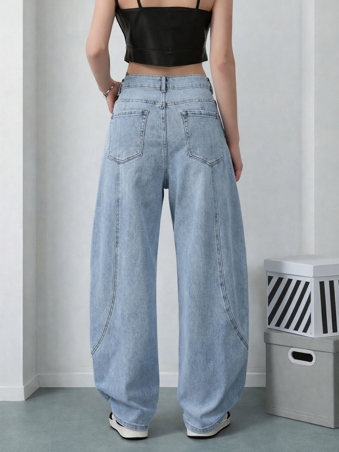 Τζιν παντελόνι με μοντέρνα baggy balloon γραμμή που συνδυάζει στυλ και απόλυτη άνεση. Η ιδιαίτερη καμπύλη ραφή στα πόδια δημιουργεί εντυπωσιακό σχήμα, ενώ η ελαστική σύνθεση προσφέρει ελευθερία κινήσεων και τέλεια εφαρμογή.