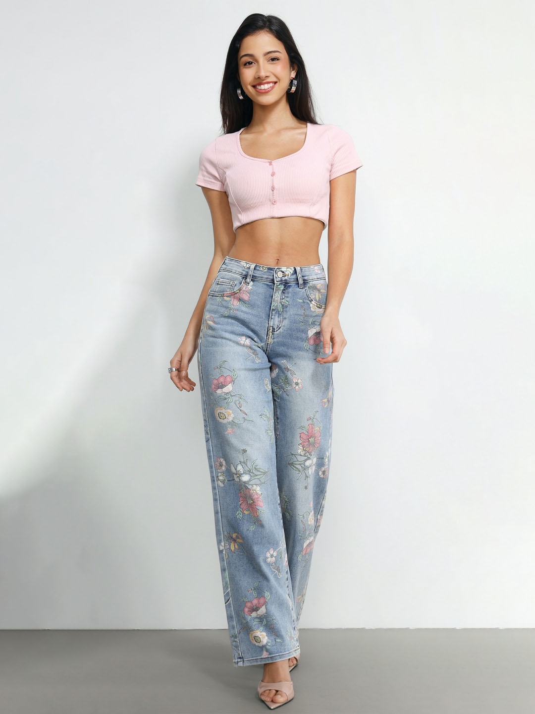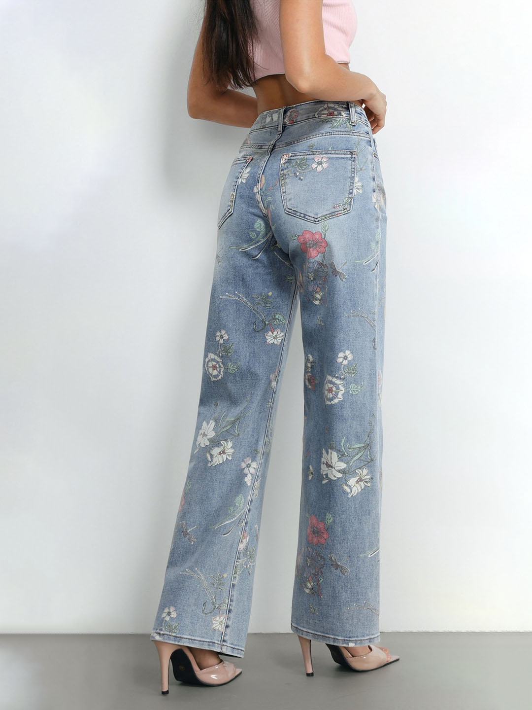 Μοντέρνο τζιν παντελόνι με εντυπωσιακό floral σχέδιο που δίνει ρομαντική και ξεχωριστή πινελιά σε κάθε εμφάνιση. Η wide leg γραμμή του προσφέρει άνεση και κομψότητα, δημιουργώντας μια μοντέρνα και θηλυκή σιλουέτα.