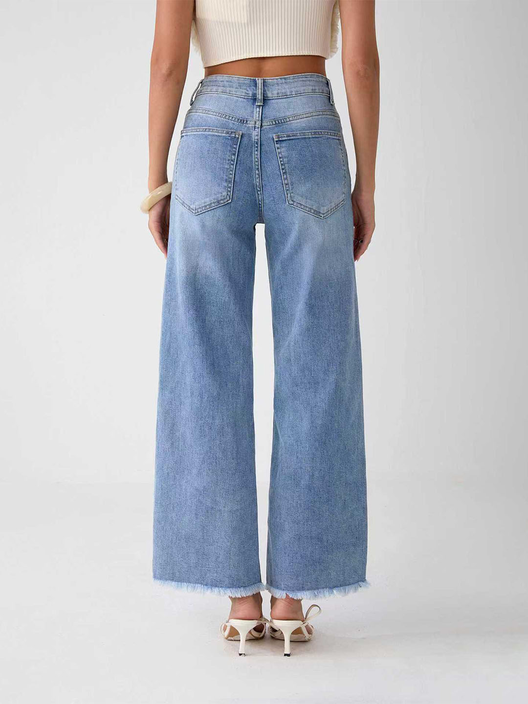 Παντελόνι Τζιν Wide Leg Με Ξέφτια Στο Τελείωμα