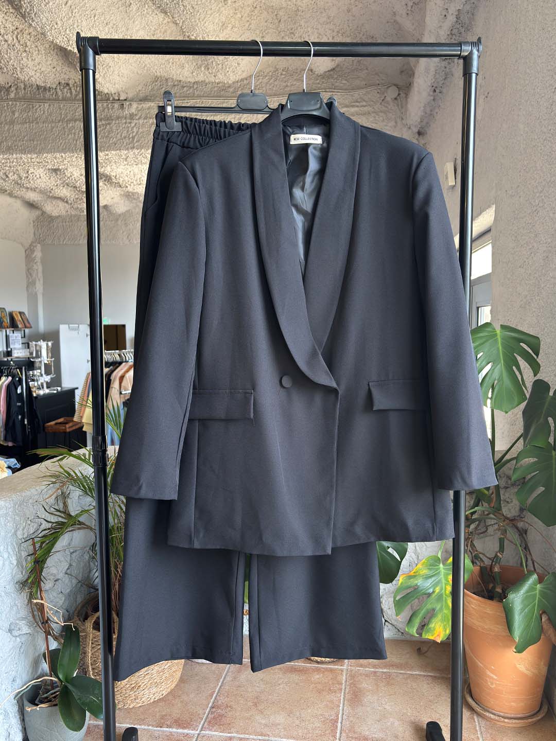 Oversized κοστούμι που συνδυάζει άνεση και σύγχρονο στυλ σε κάθε εμφάνιση. Το σακάκι έχει χαλαρή γραμμή που δίνει μοντέρνο χαρακτήρα, ενώ η παντελόνα προσφέρει άνετη εφαρμογή και σωστή εφαρμογή στο σώμα.