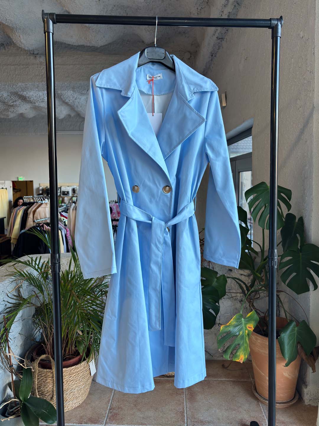 Ανοιξιάτικη καμπαρντίνα με μοντέρνα γραμμή που συνδυάζει κομψότητα και φρεσκάδα σε κάθε εμφάνιση. Ο μεγάλος γιακάς δίνει χαρακτήρα, ενώ η ζώνη στη μέση τονίζει τη σιλουέτα και δημιουργεί ένα πιο θηλυκό και προσεγμένο αποτέλεσμα.