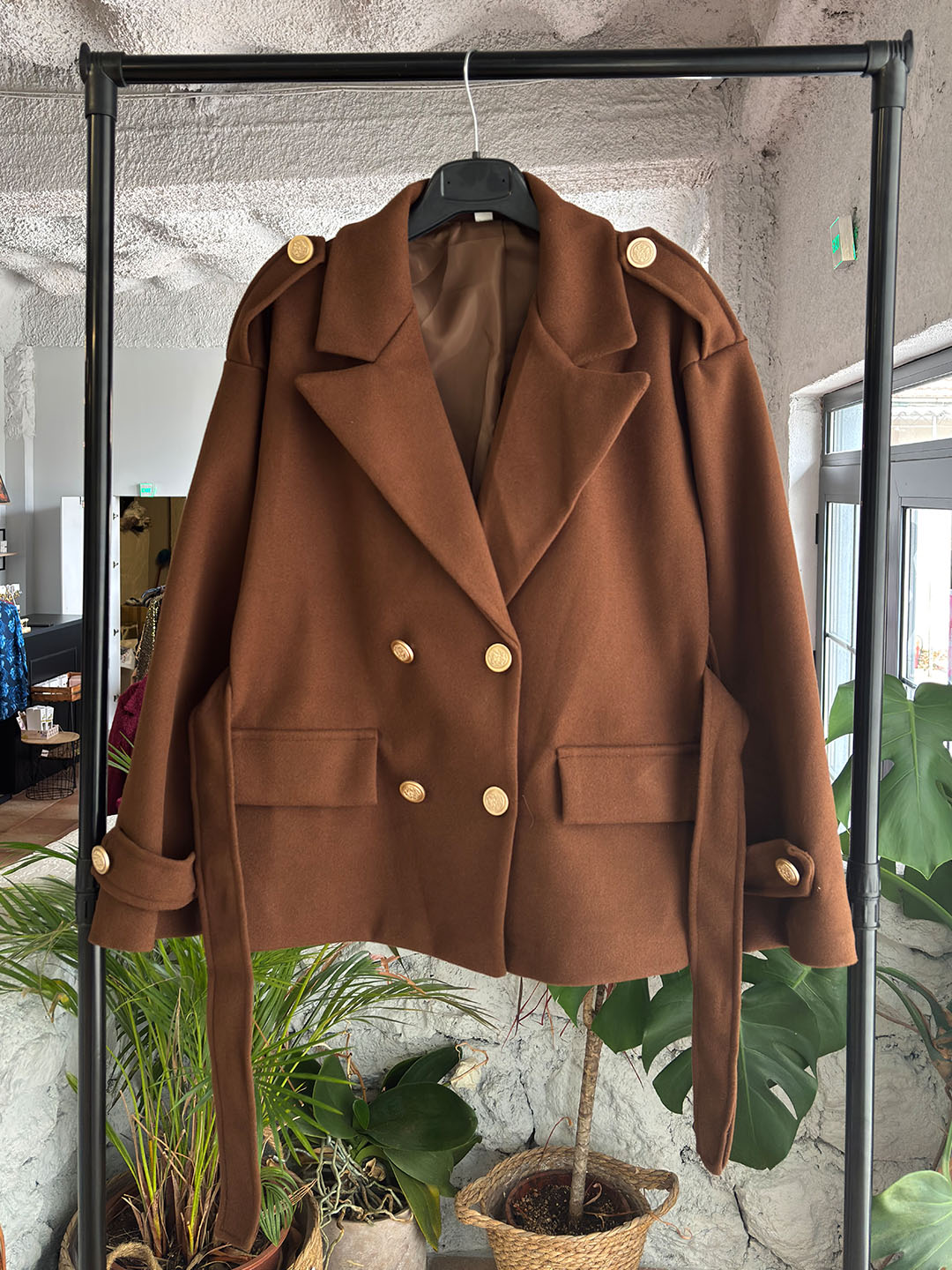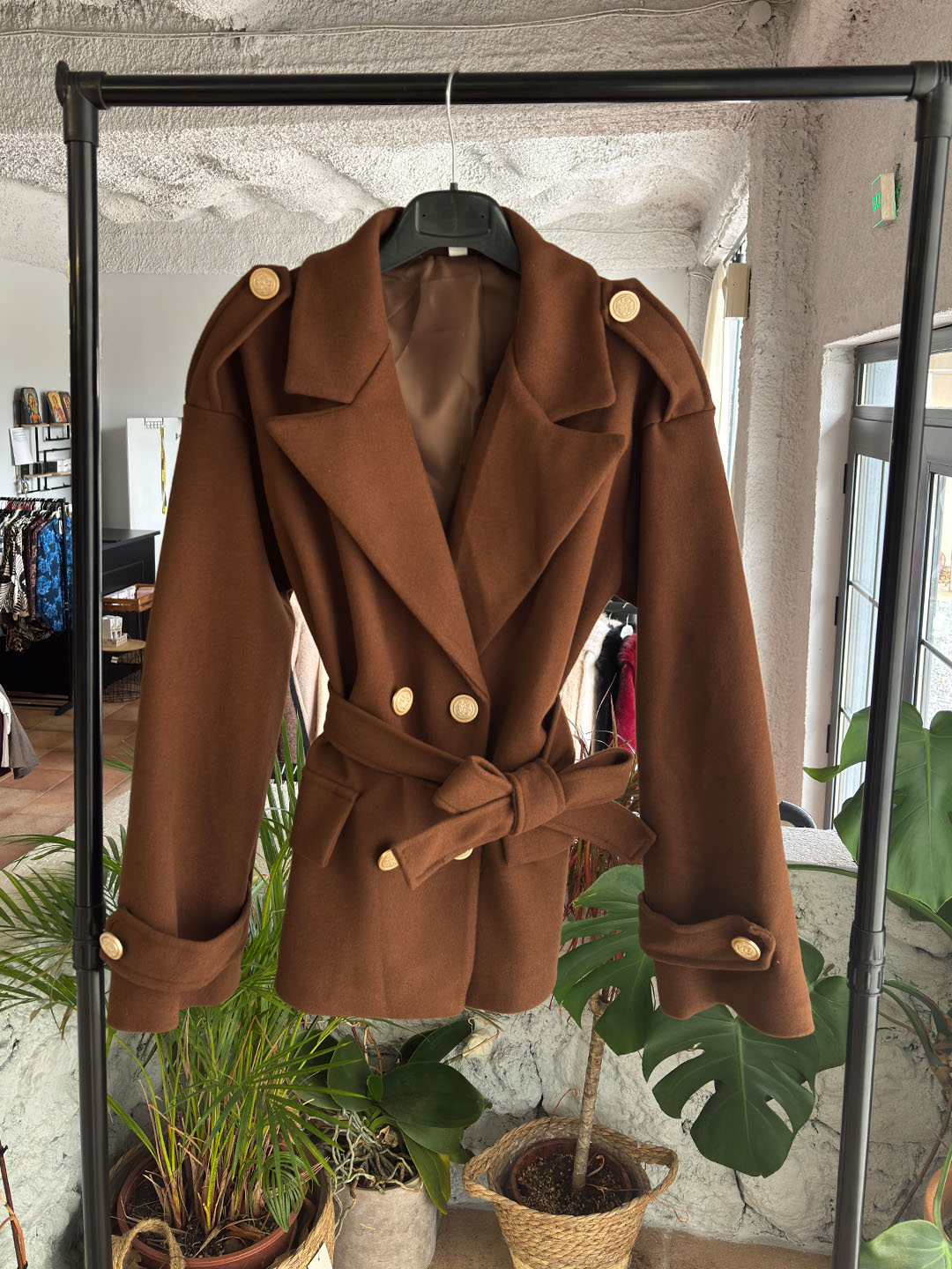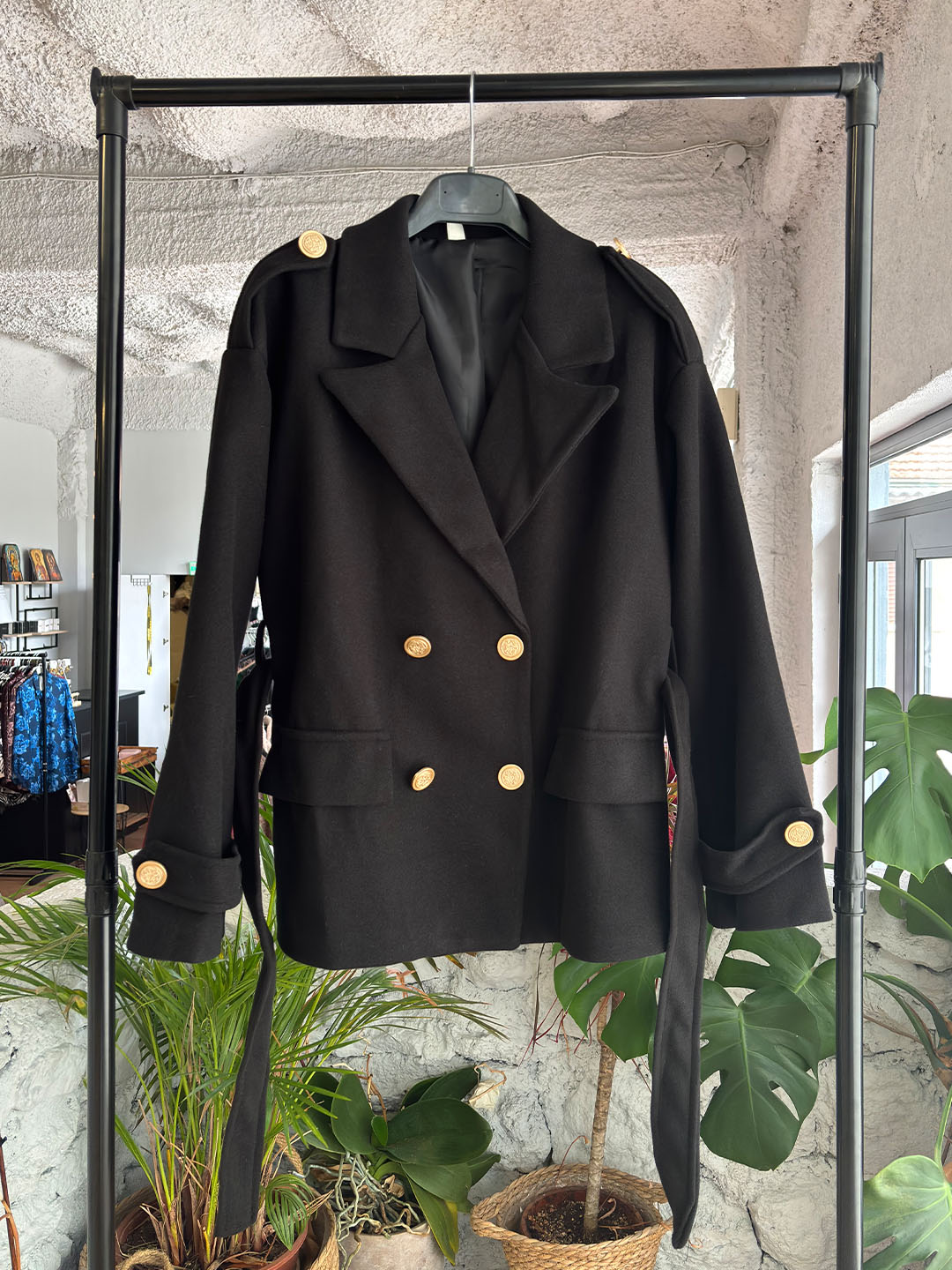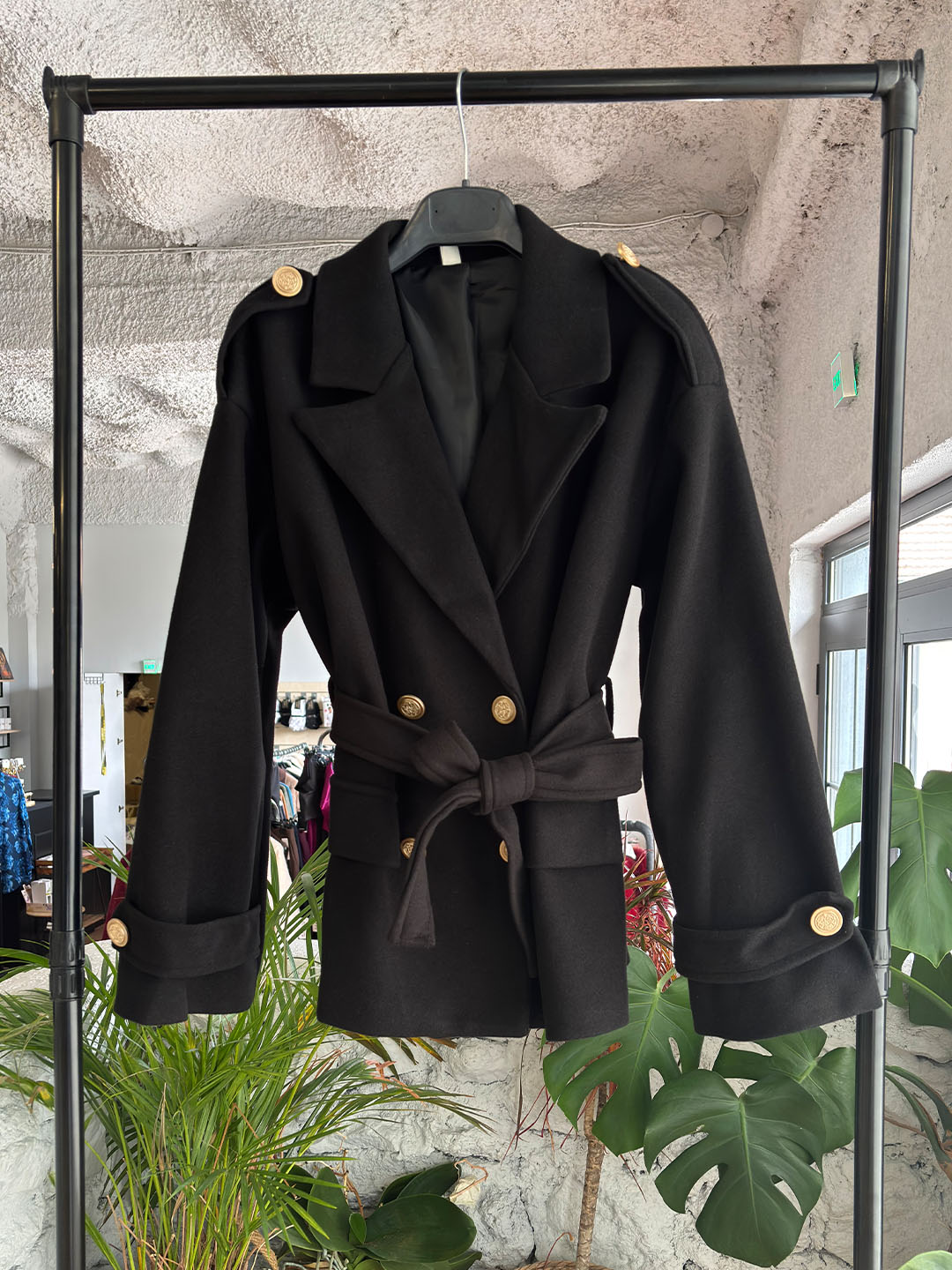 Παλτό Κοντό Με Χρυσά Κουμπιά Και Δέσιμο Στη Μέση