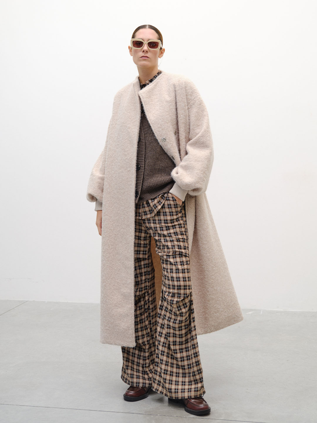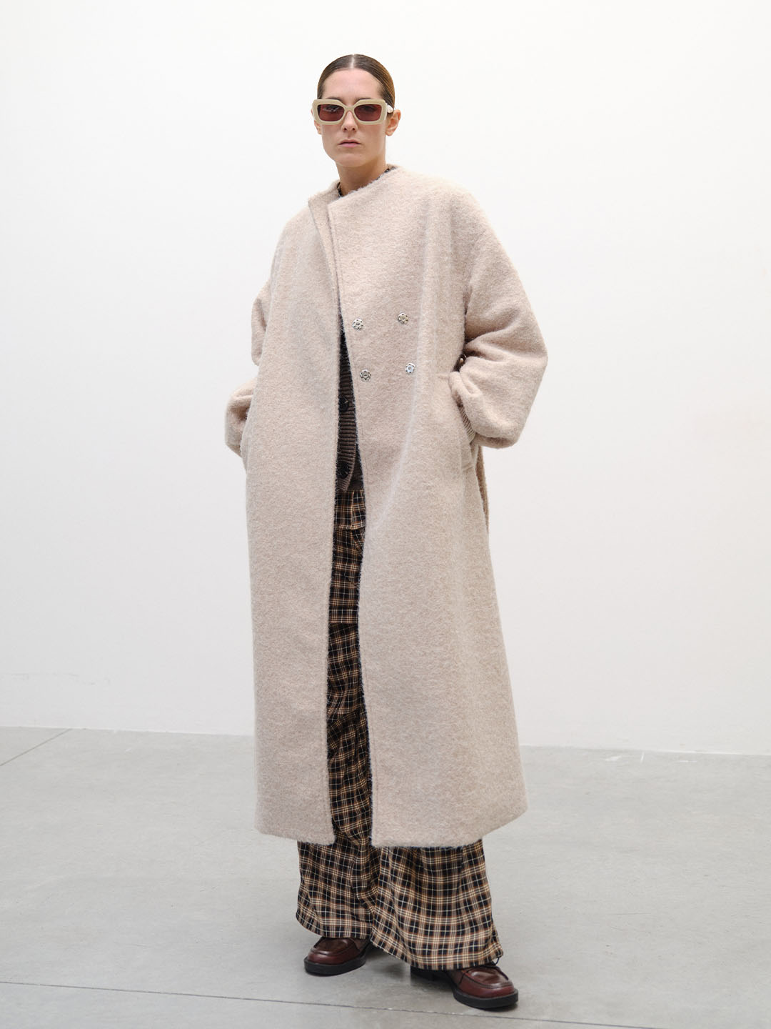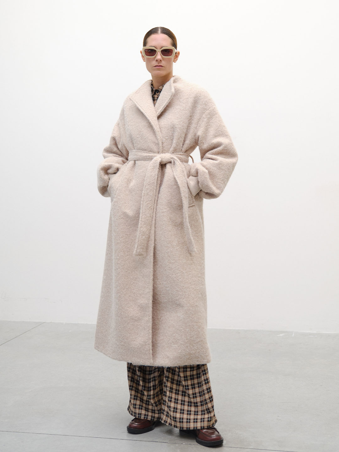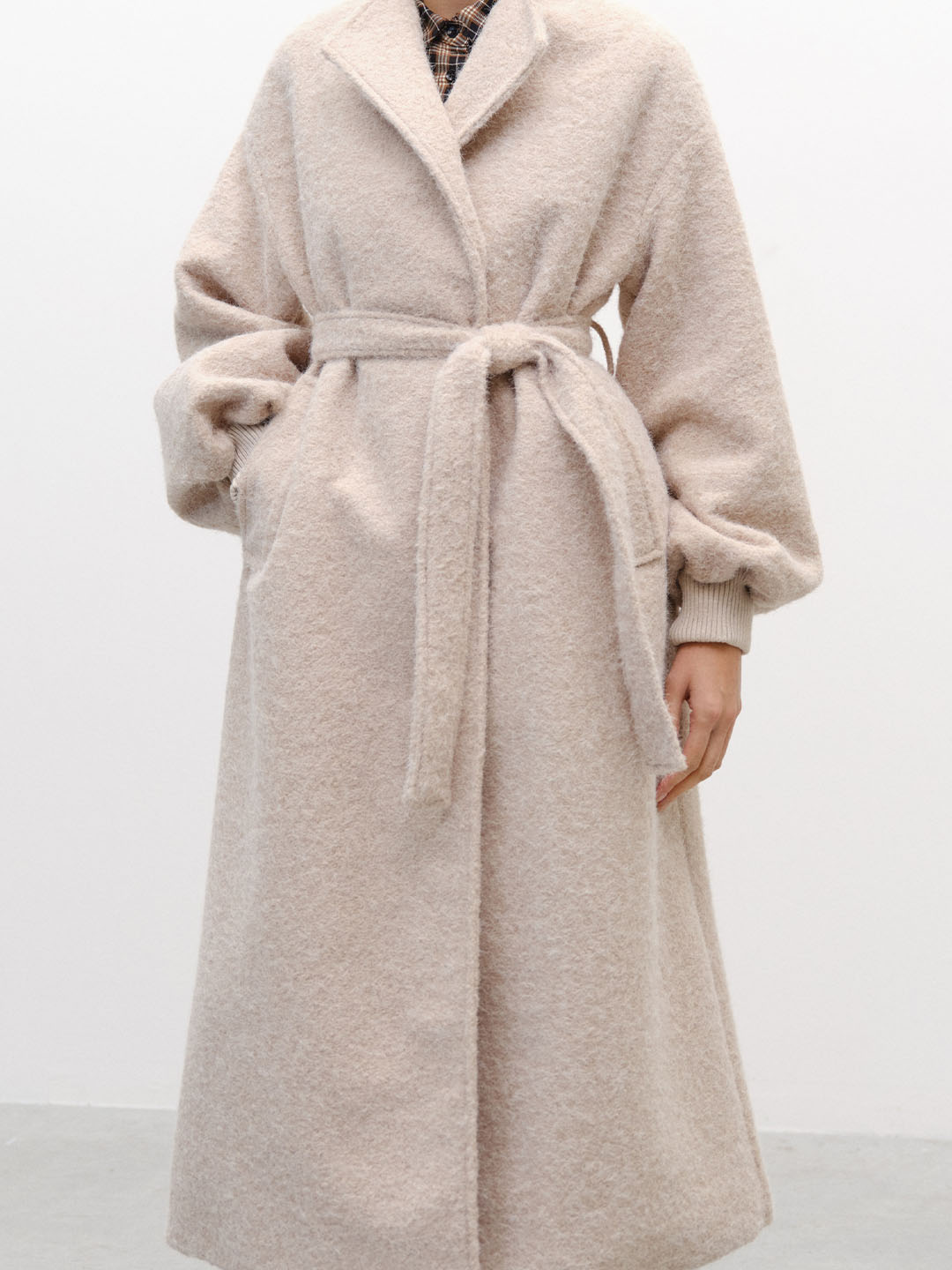 Παλτό Μακρύ Με Φαρδιά Μανίκια Crema “LUMINA”