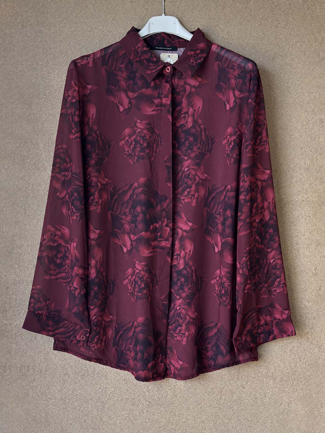 Πουκάμισο Over Size Με Τριανταφυλλα Μπορντό