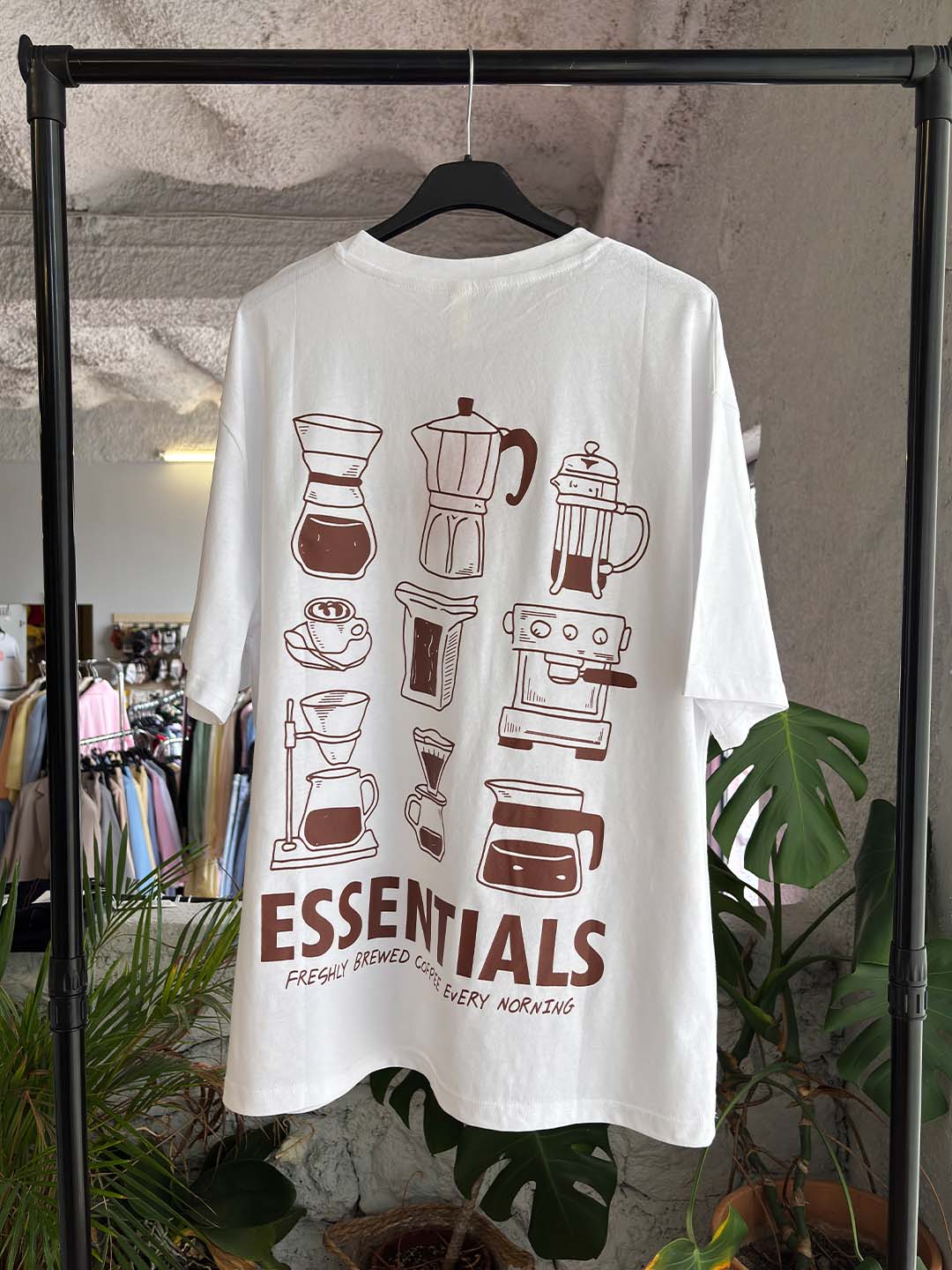 Casual oversized t-shirt με ιδιαίτερο coffee-themed print στην πλάτη που δίνει χαρακτήρα και στυλ σε κάθε εμφάνιση. Η άνετη γραμμή του το κάνει ιδανικό για all day looks, ενώ το σχέδιο στην πίσω πλευρά προσθέτει ένα μοντέρνο streetwear vibe.