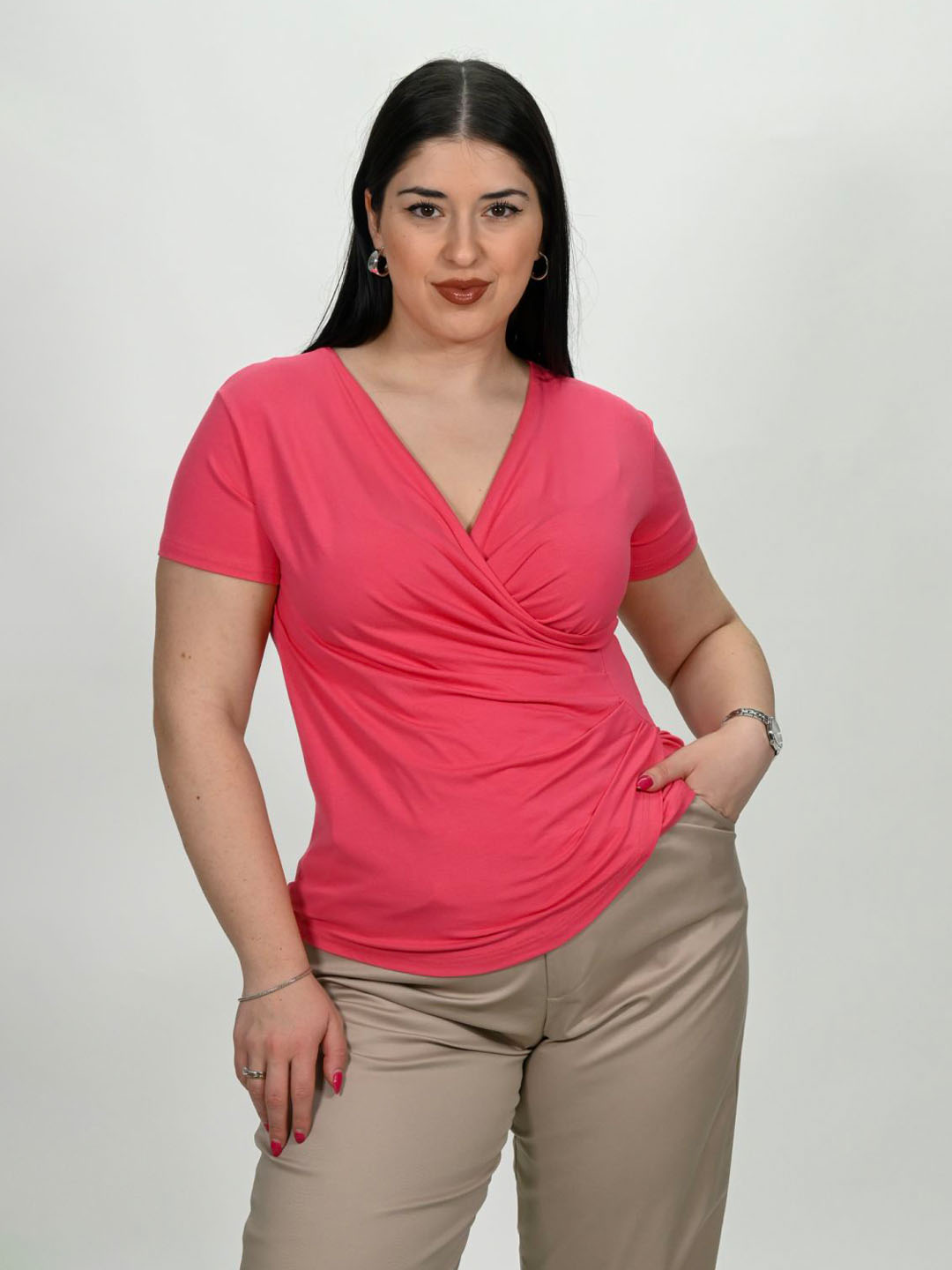Η Plus Size κρουαζέ μπλούζα ξεχωρίζει για το V ντεκολτέ και τη draped εφαρμογή της, που κολακεύει το μπούστο και δημιουργεί πιο θηλυκή γραμμή.