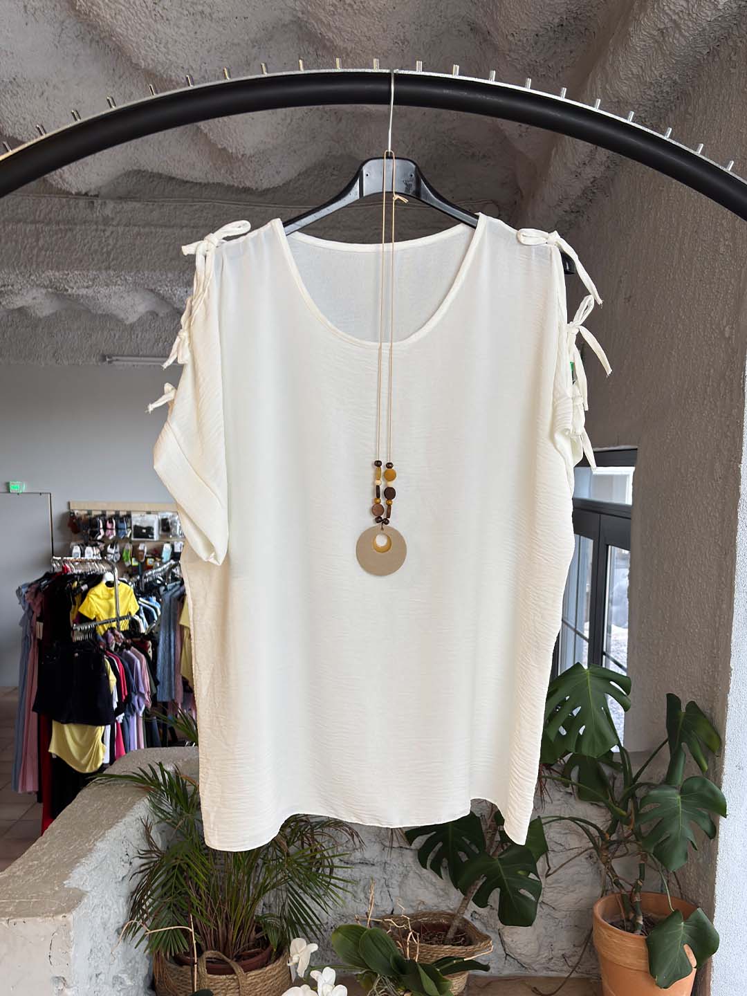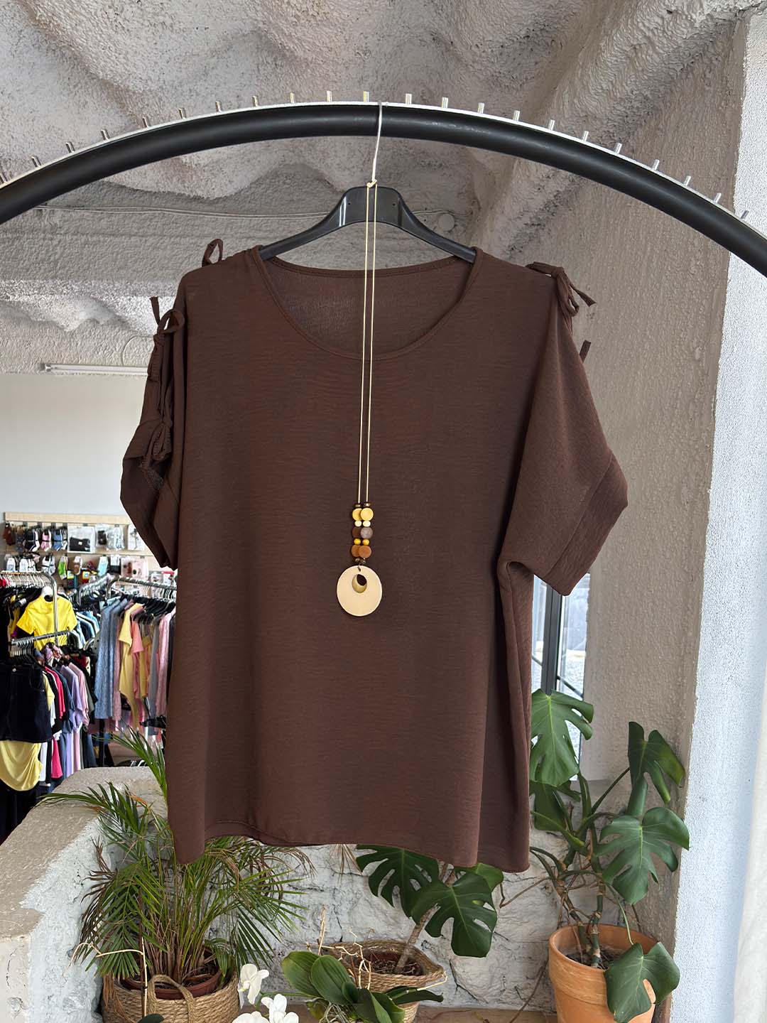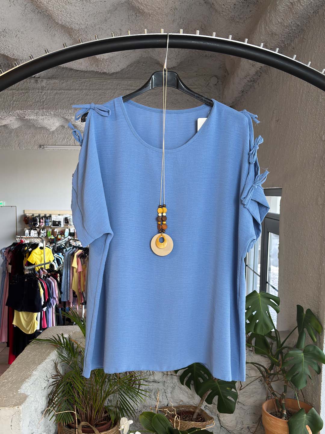 Plus Size Μπλούζα με Δεσίματα στους Ώμους & Κολιέ – Άνετη & Μοντέρνα (8 Αποχρώσεις)