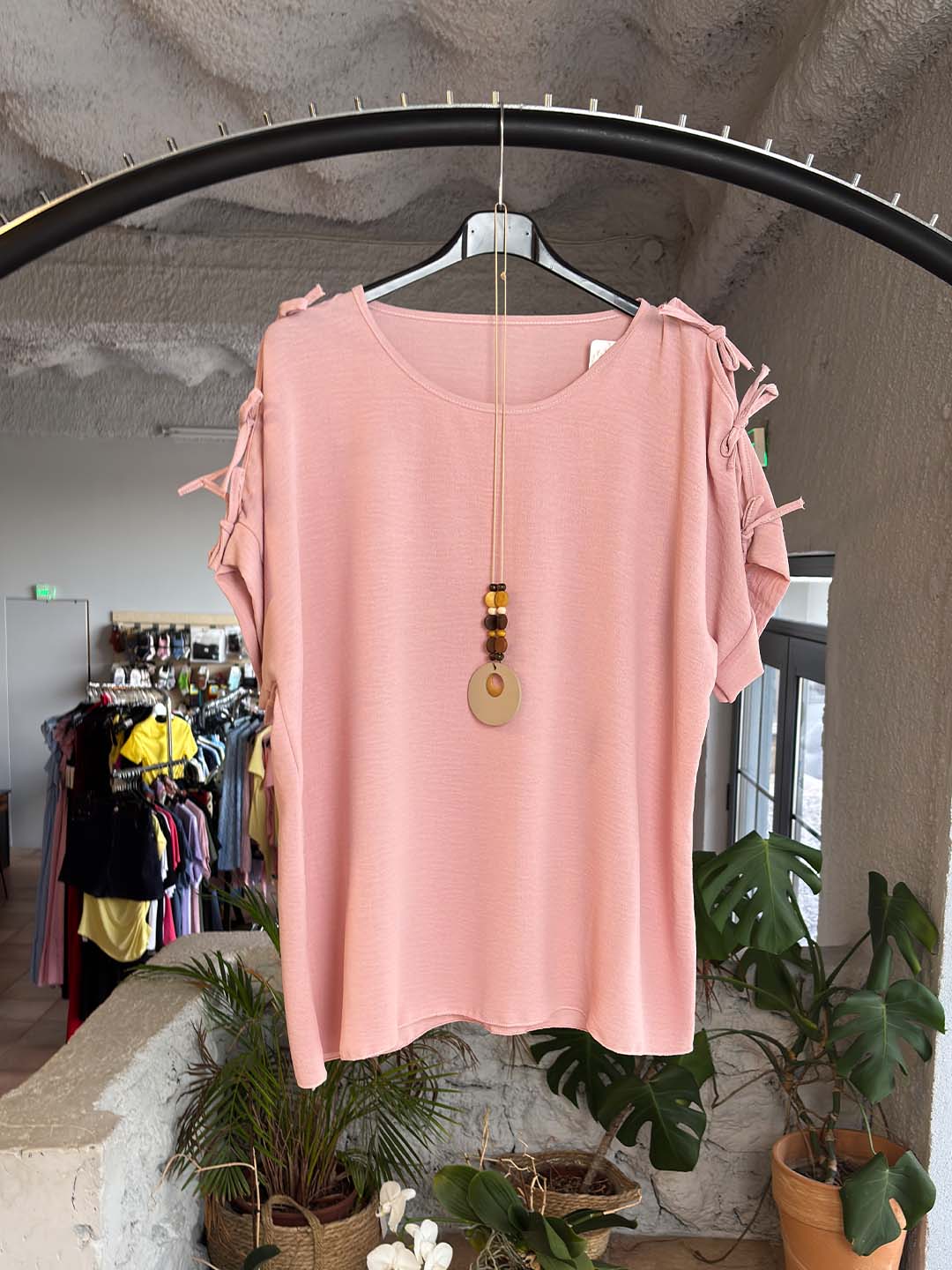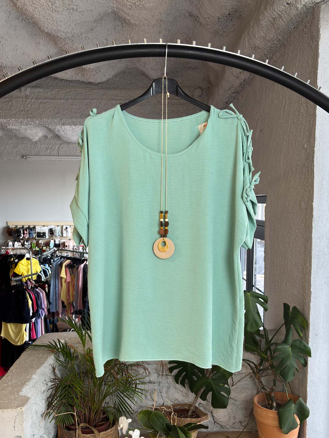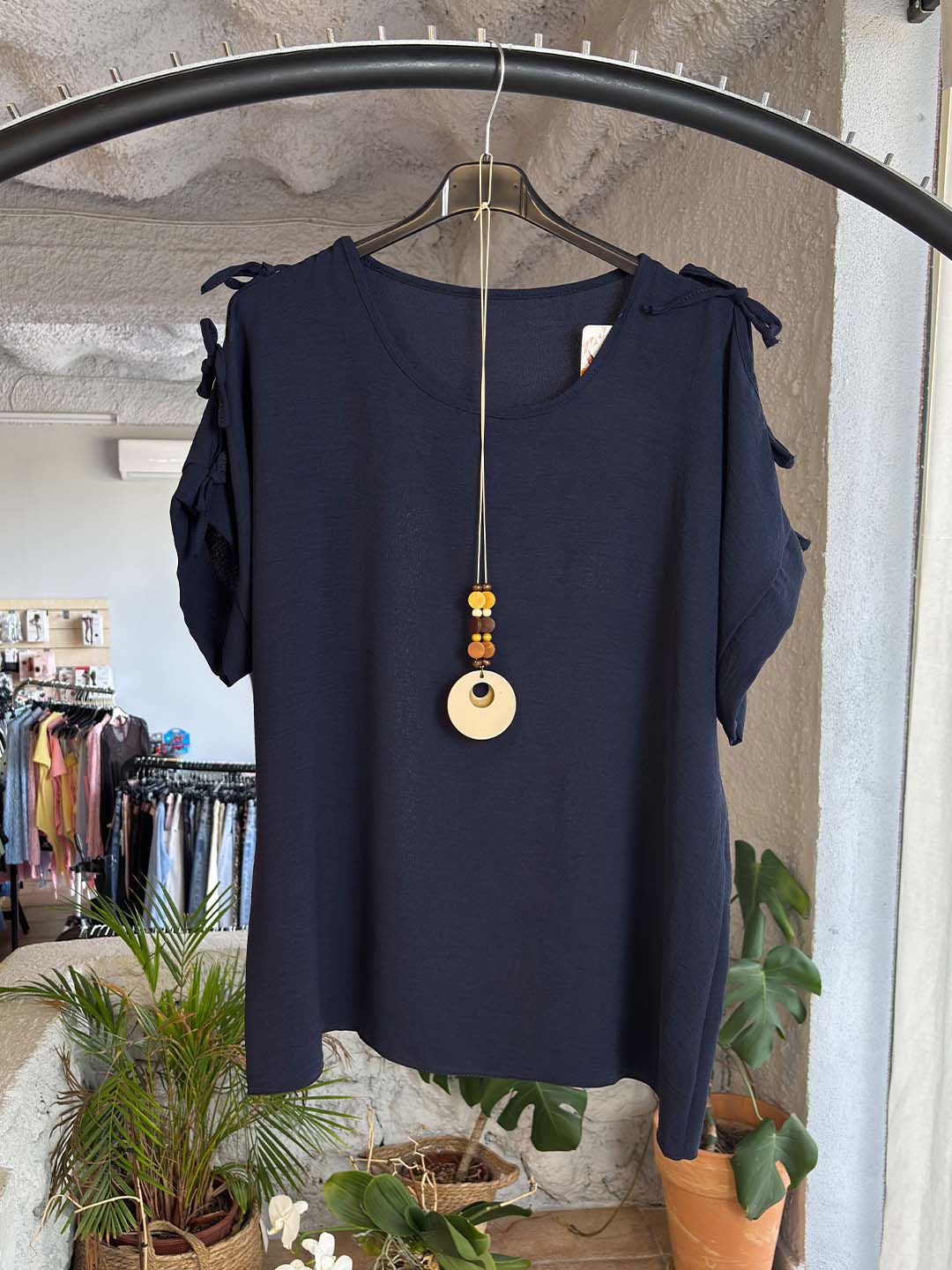 Plus Size Μπλούζα με Δεσίματα στους Ώμους & Κολιέ – Άνετη & Μοντέρνα (8 Αποχρώσεις)