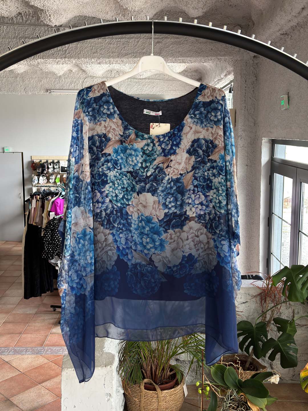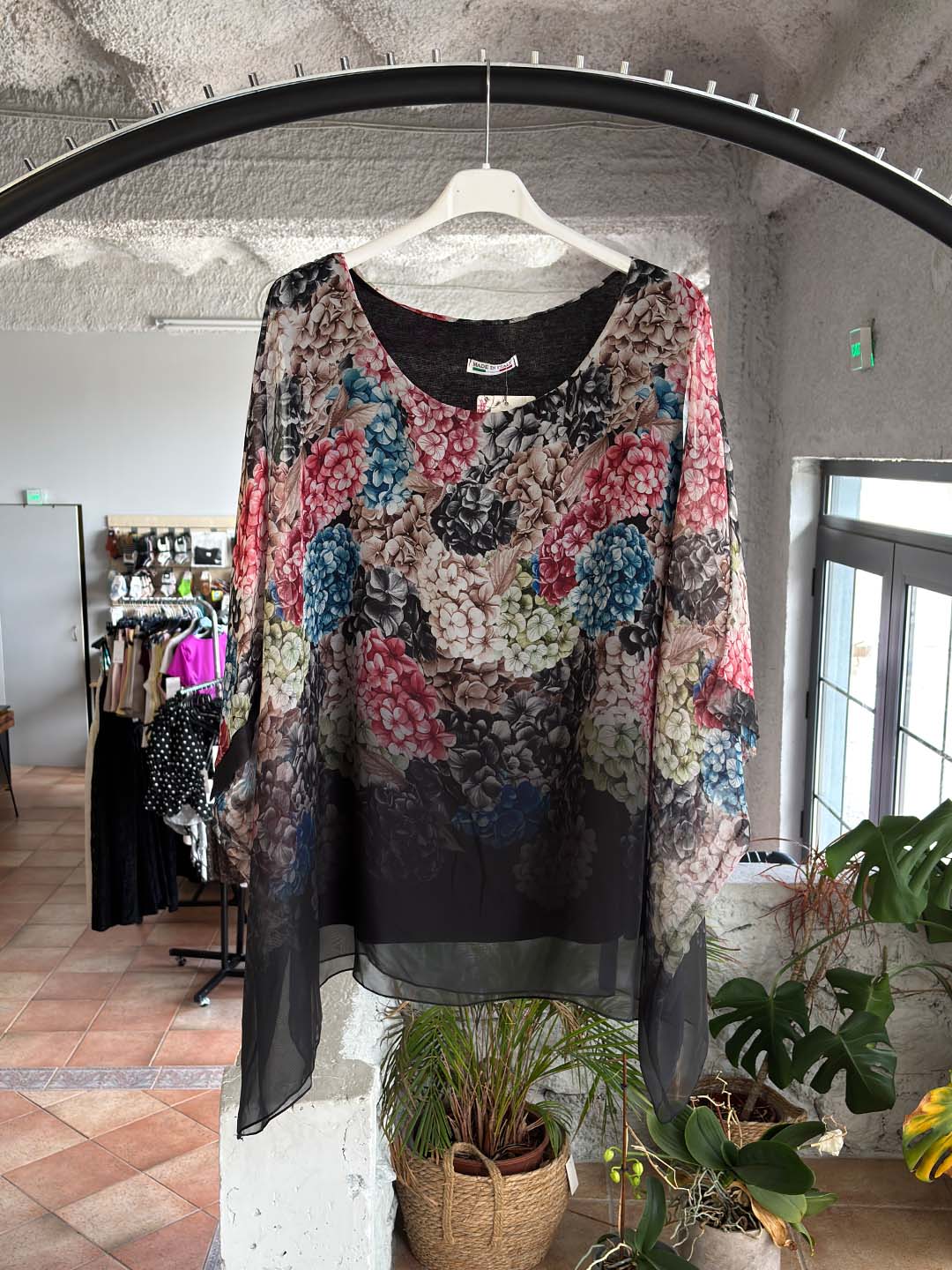 Το floral σχέδιο σε απαλά “σβησμένα” χρώματα δημιουργεί ένα ρομαντικό και ιδιαίτερο αποτέλεσμα, ενώ η ανάλαφρη εξωτερική στρώση χαρίζει κίνηση και στυλ.
