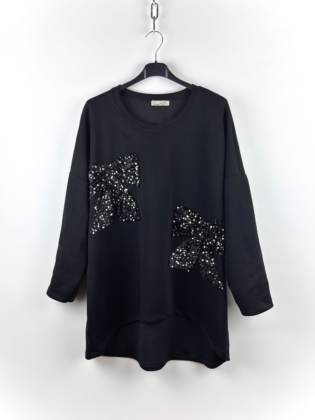 Μπλούζα Μαύρη Plus Size Σχέδιο Με Φιόγκους Και Παγιέτες Ασημί