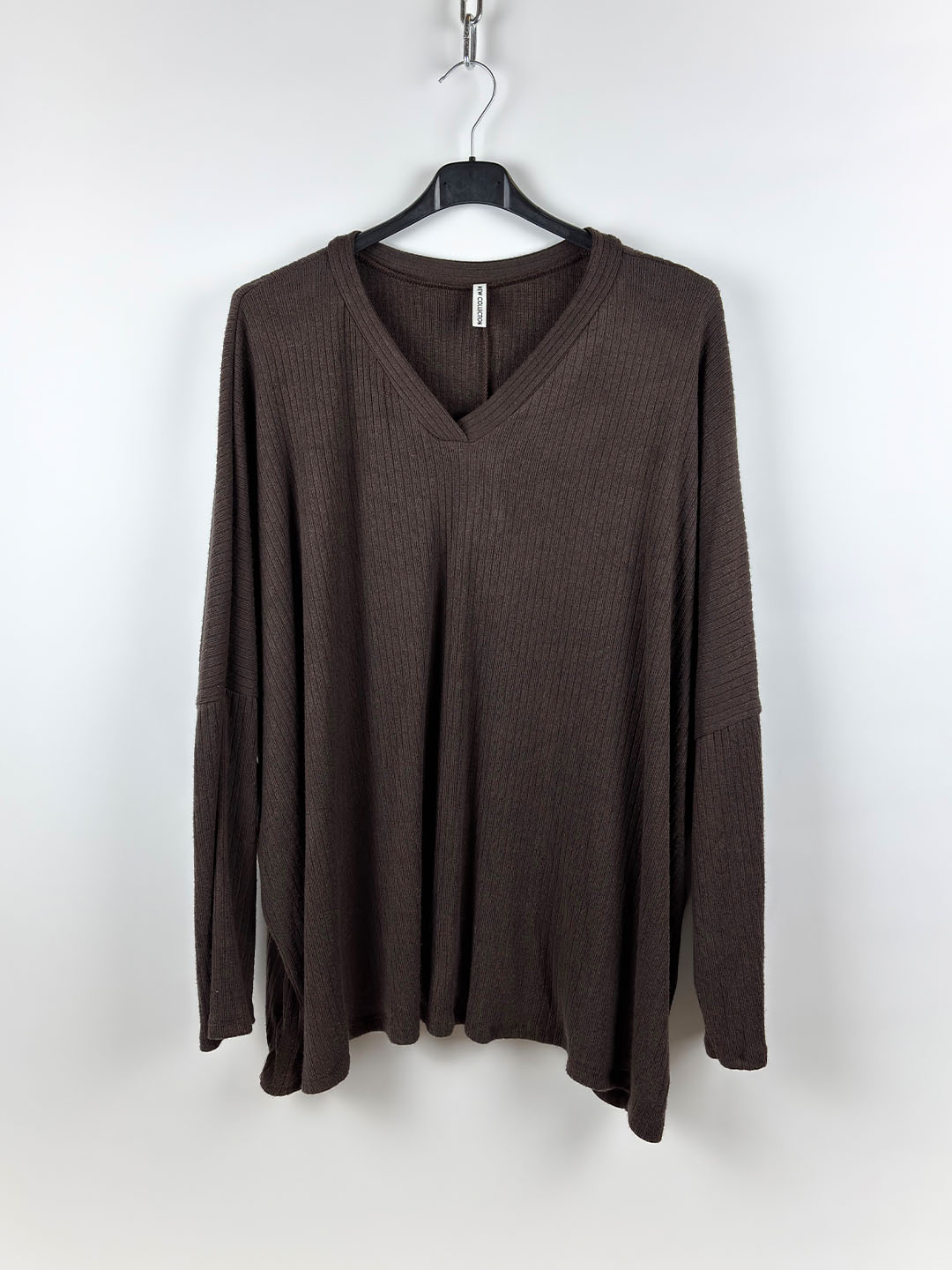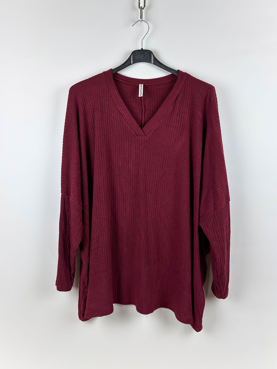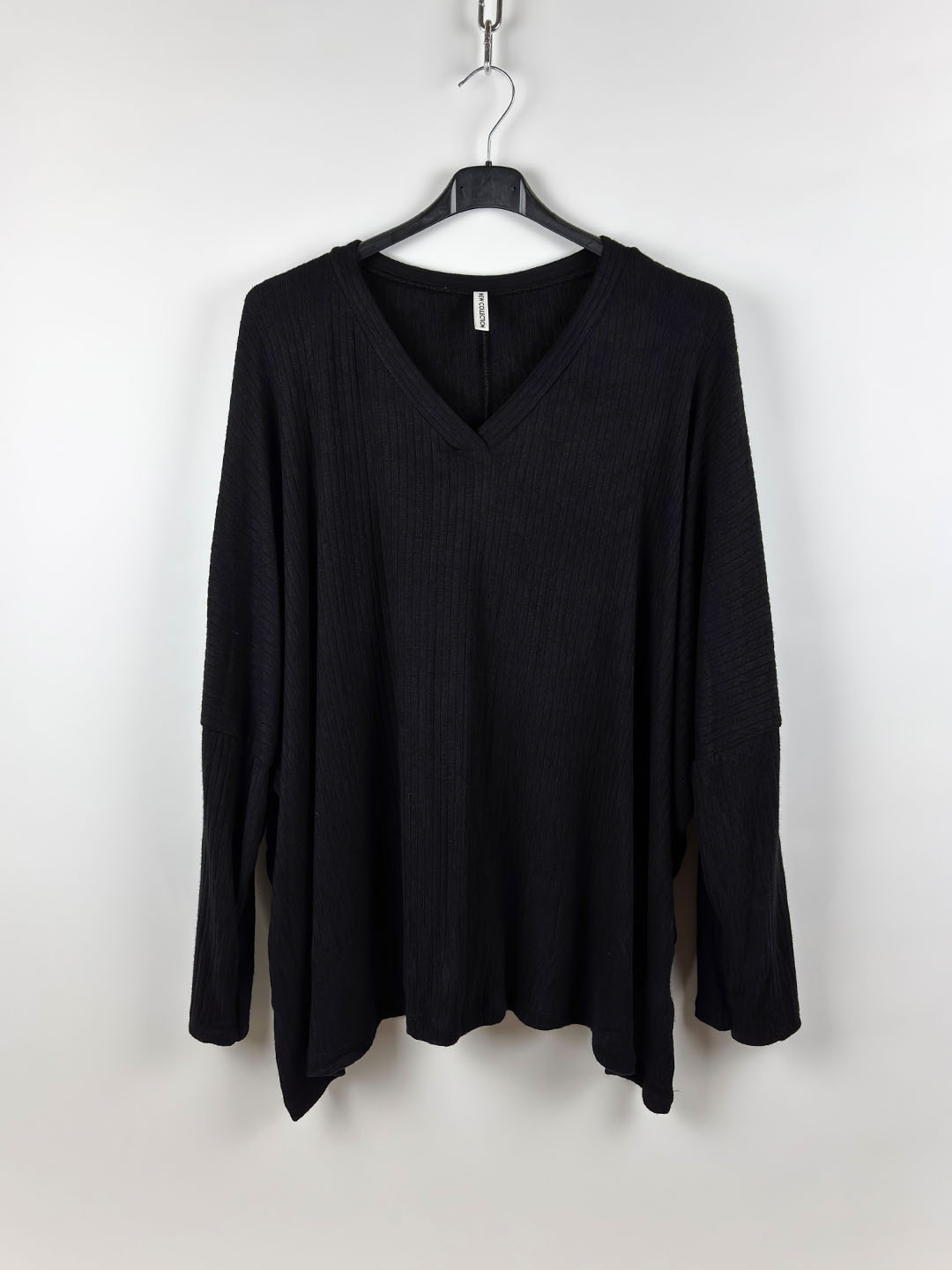 Μπλούζα Plus Size Oversized Ψιλό Πλεκτό Σε V