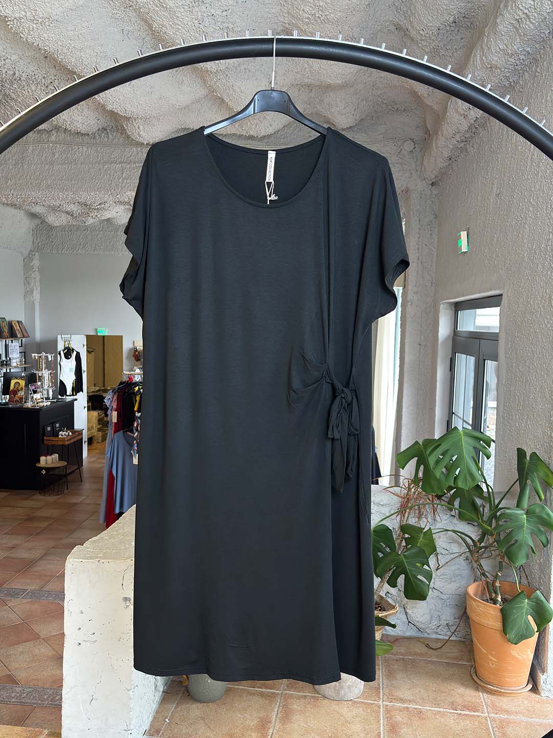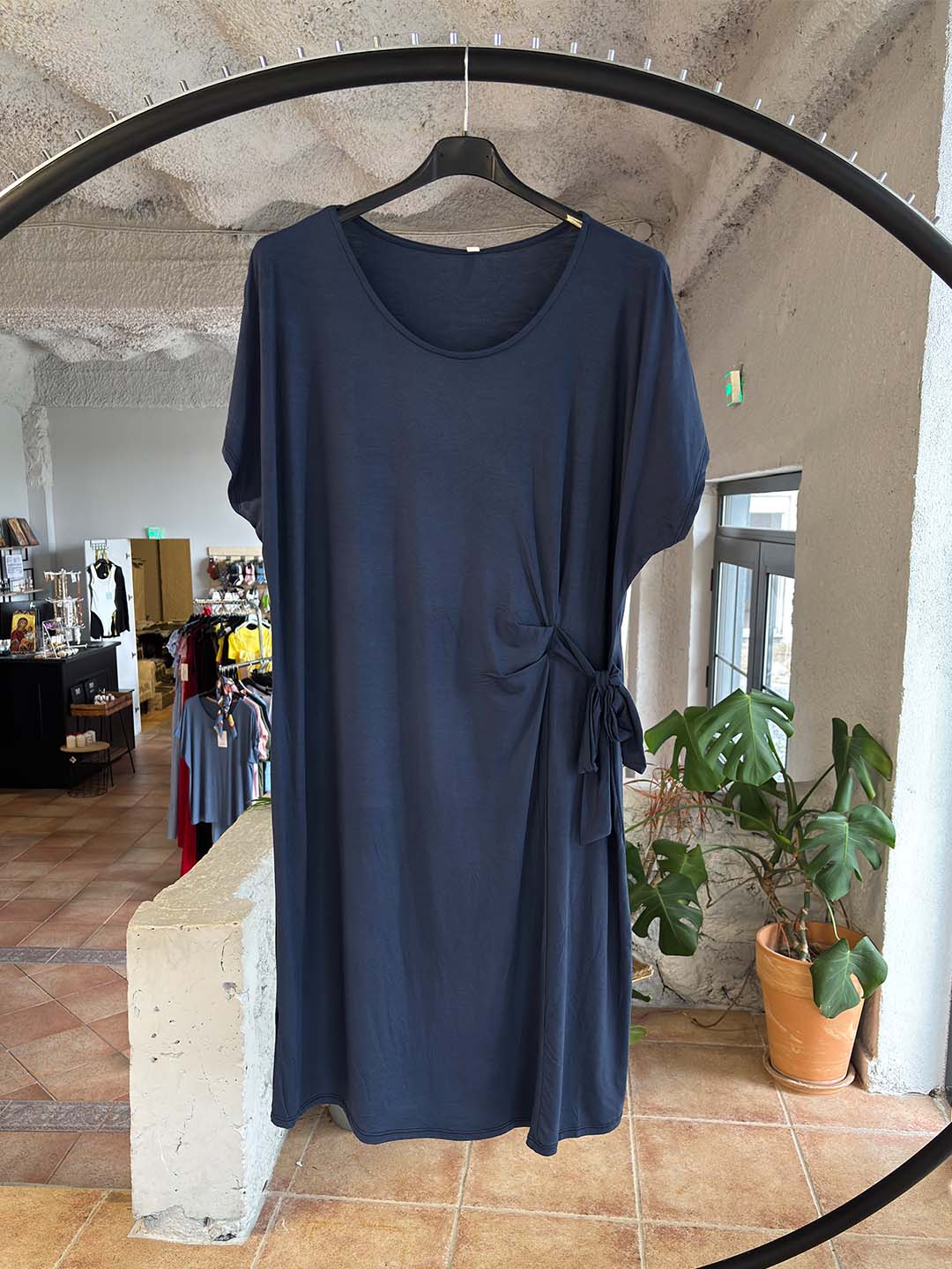 Η χαλαρή plus size γραμμή του αγκαλιάζει όμορφα το σώμα, ενώ το ιδιαίτερο πλαϊνό δέσιμο δίνει extra στυλ και πιο κολακευτική εφαρμογή.