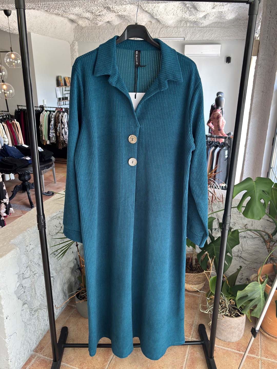 Φόρεμα Midi Κοτλέ Over Size Πετρόλ