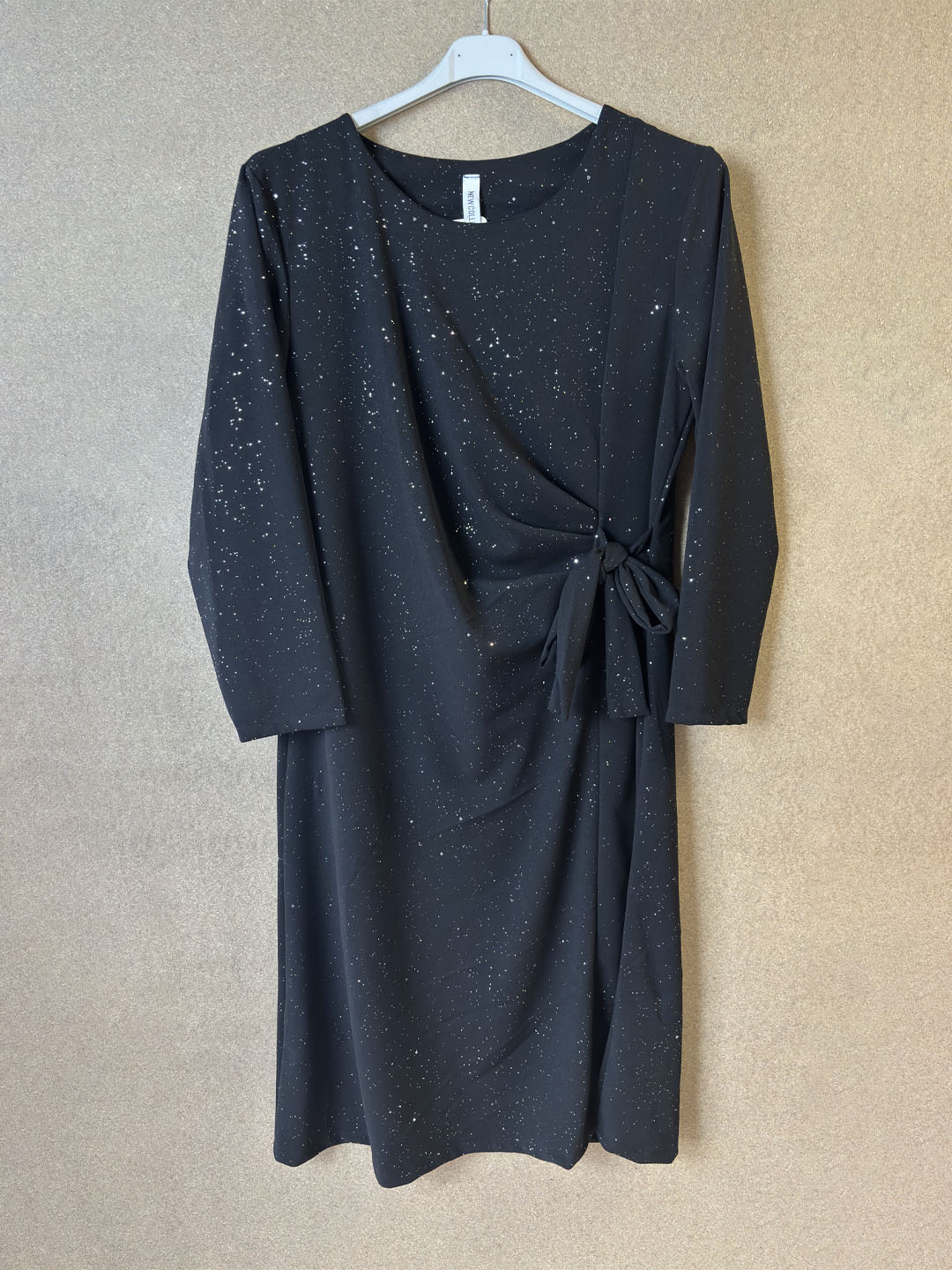 Φόρεμα Midi Μαύρο Plus Size Με Δέσιμο Στο Πλαι Και Μικρά Strass