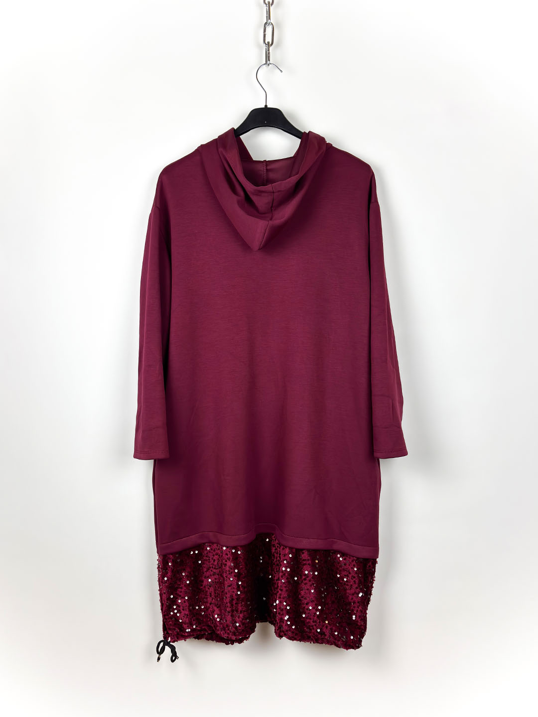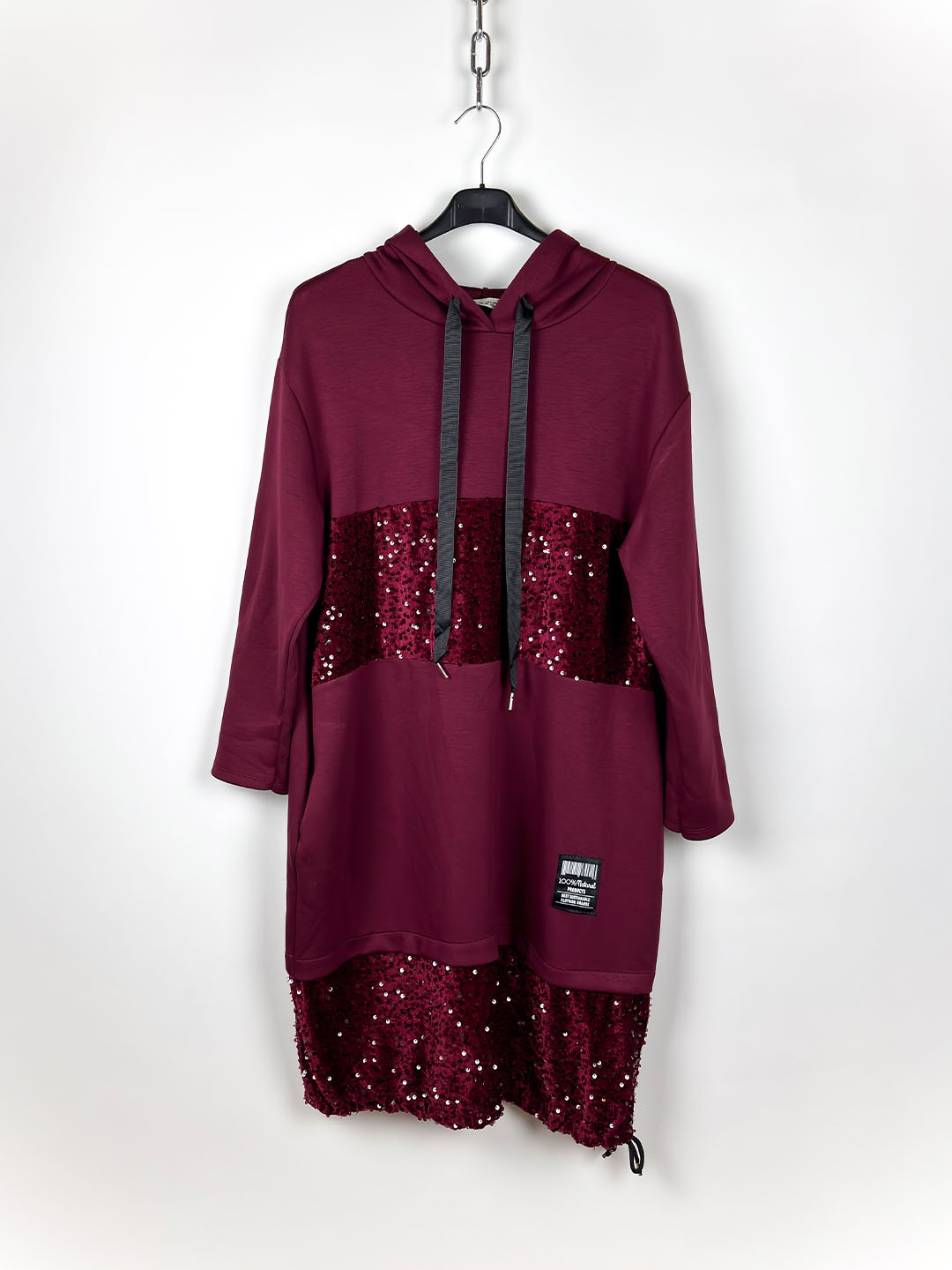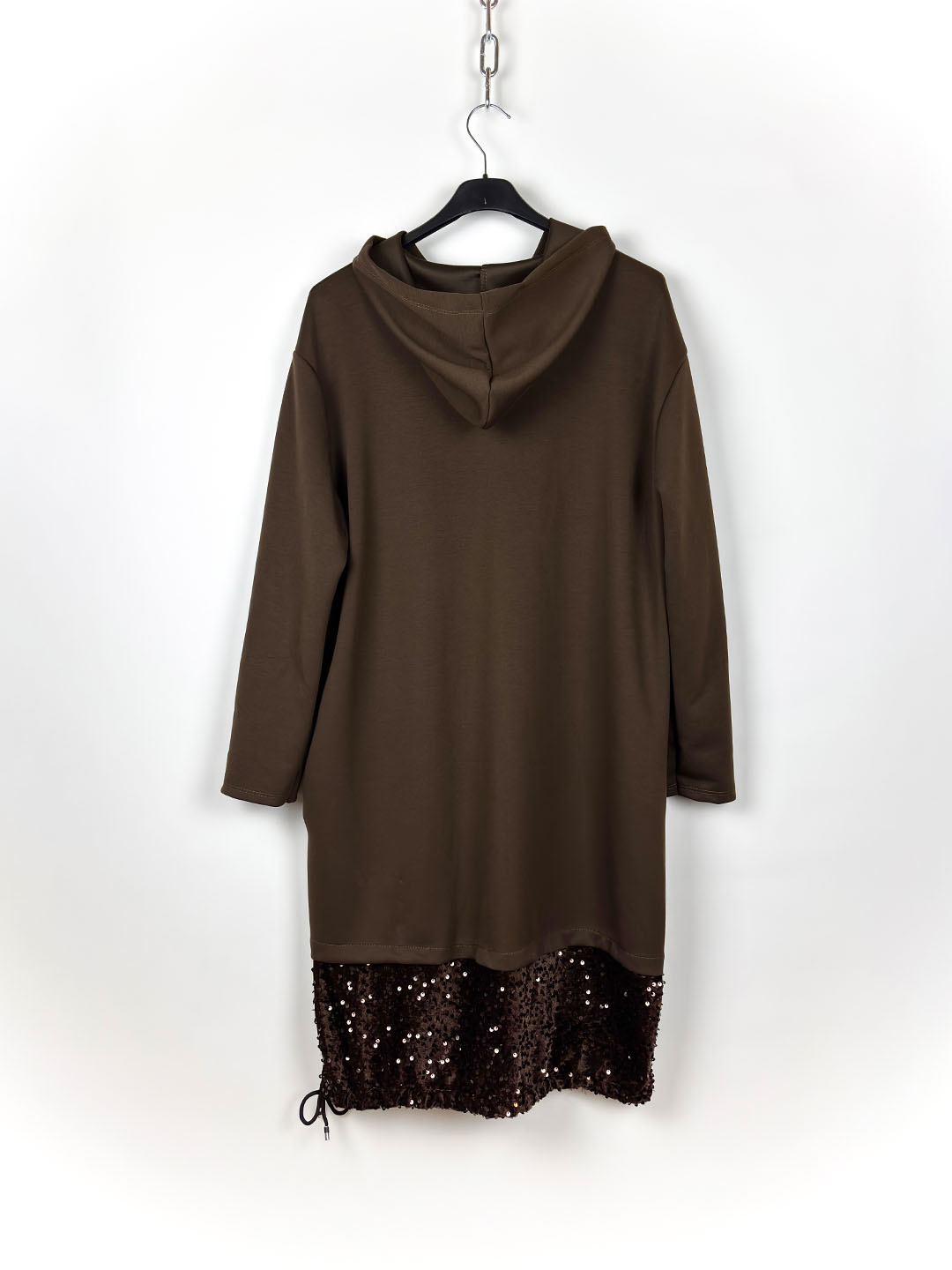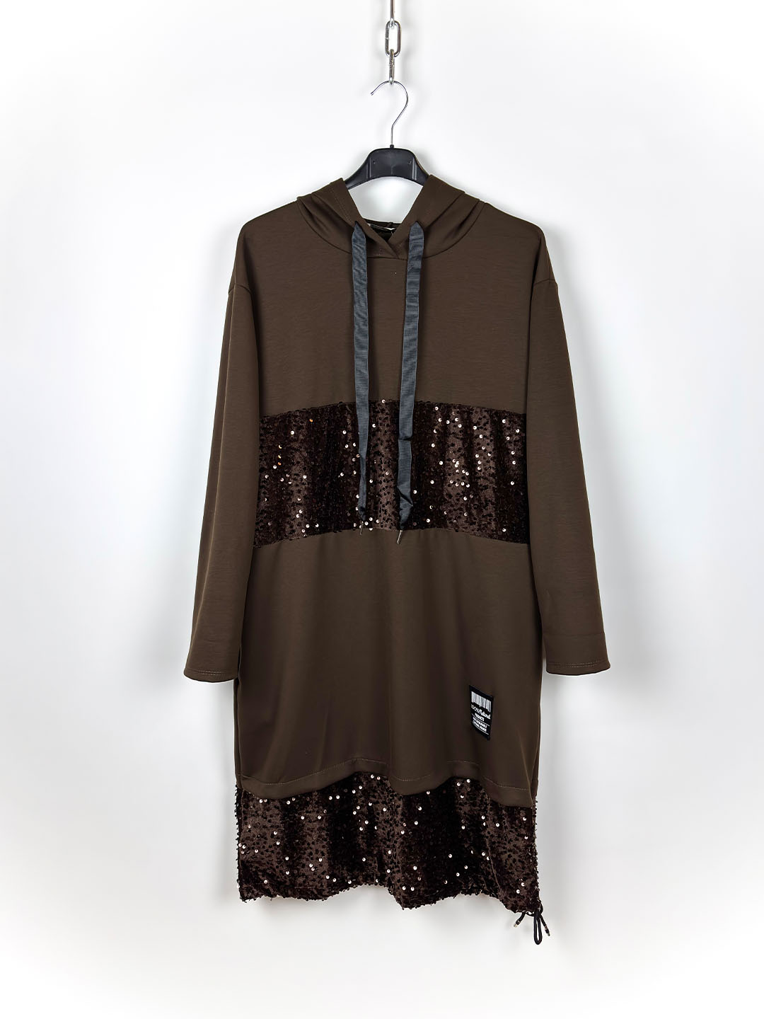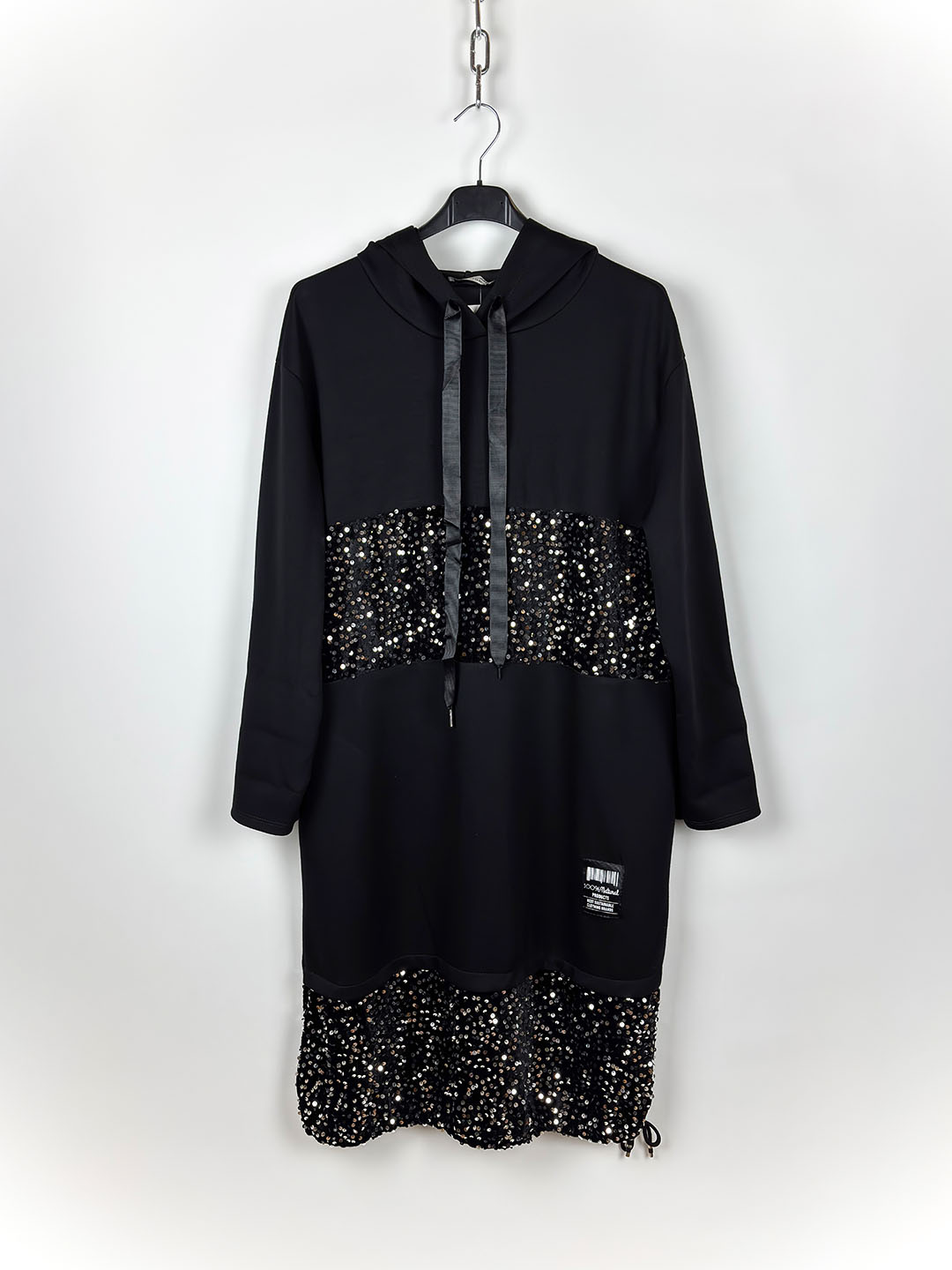 Φόρεμα Plus Size Baby Φούτερ Με Παγιέτα Και Κουκούλα