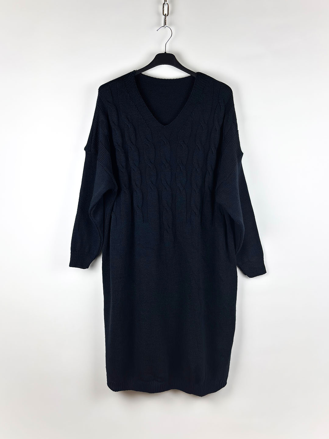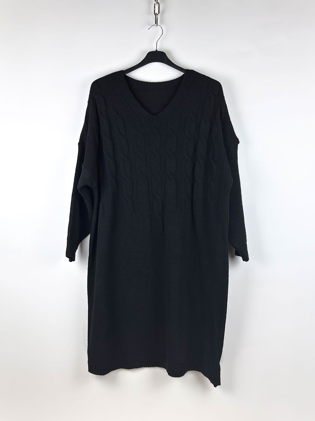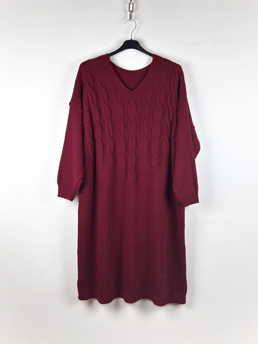 Πλεκτό Midi Φόρεμα Plus Size Με Γιακά V