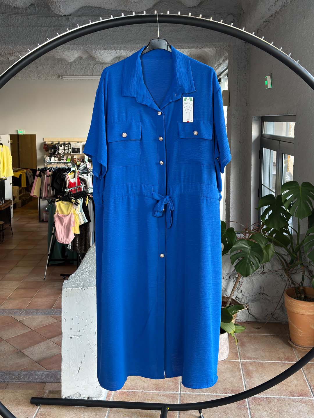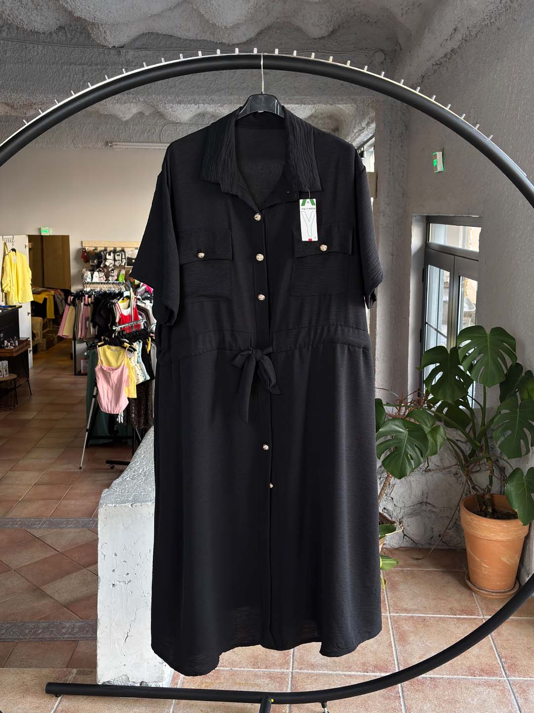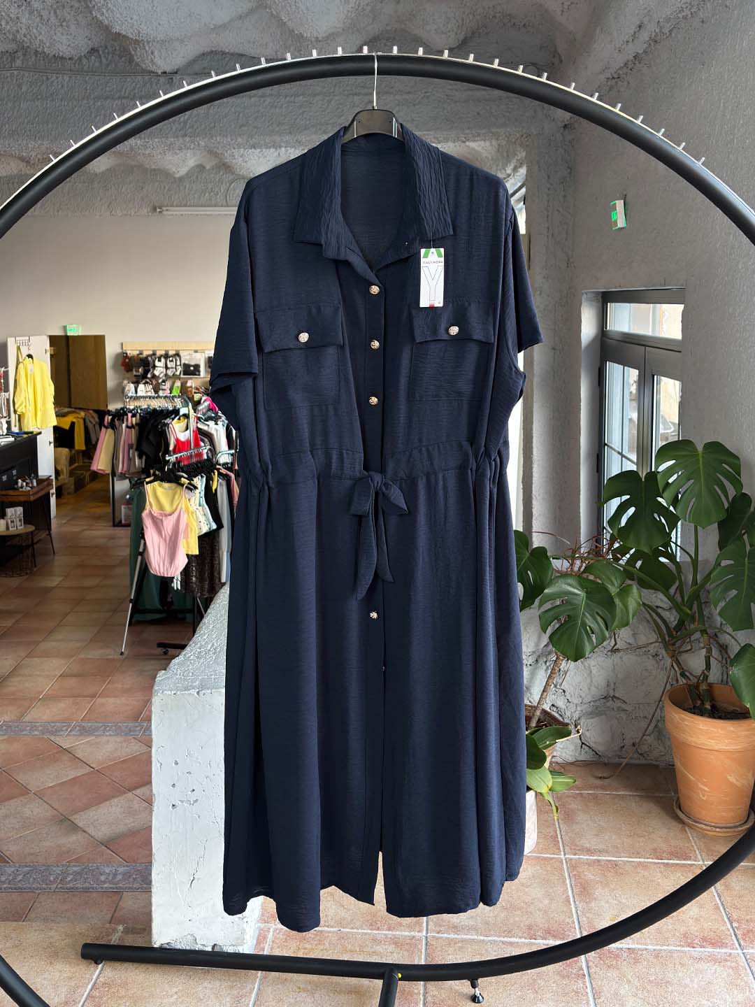 Το μήκος του είναι midi προς μακρύ, καλύπτει άνετα και δίνει μια κομψή, αέρινη κίνηση σε κάθε βήμα. Τα κουμπιά μπροστά και οι τσέπες στο στήθος δίνουν ένα πιο casual-chic ύφος, ιδανικό για όλες τις ώρες.