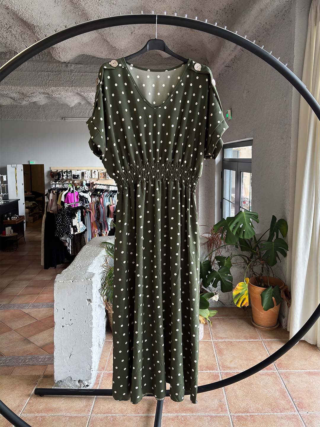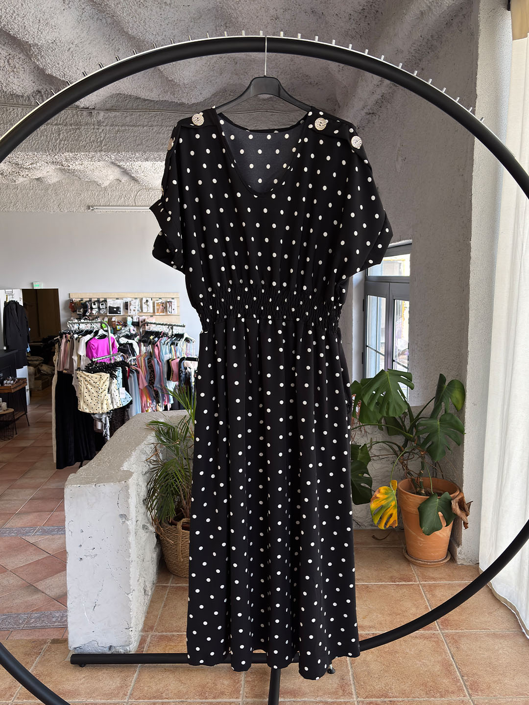 Το πουά print δίνει μία διαχρονική και κομψή αισθητική, ενώ το ελαφρύ ύφασμα το κάνει ιδανικό για όλη μέρα.