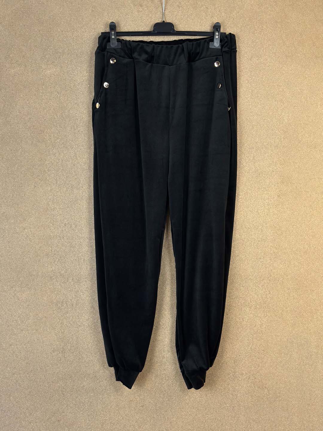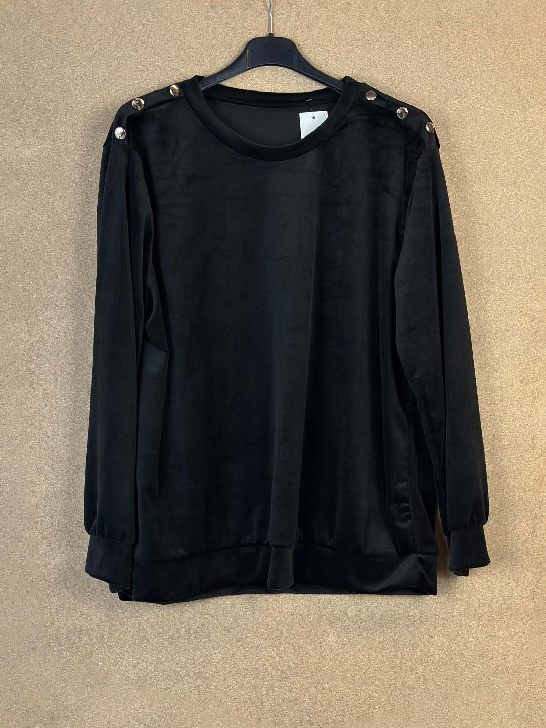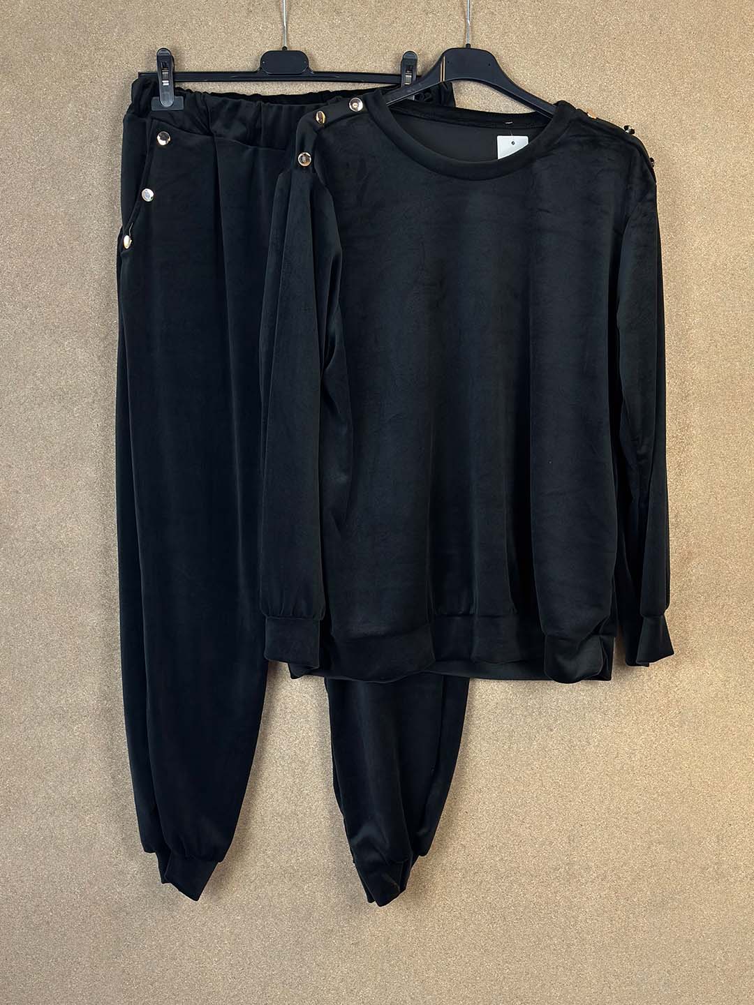 Σετ Φόρμες Βελουτέ Μαύρο Plus Size Με Χρυσά Κουμπιά