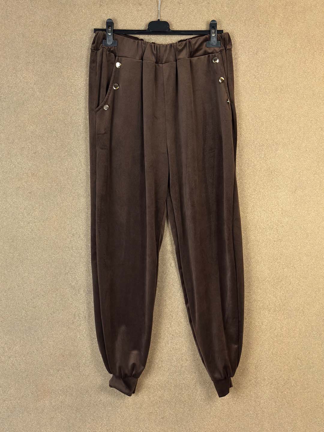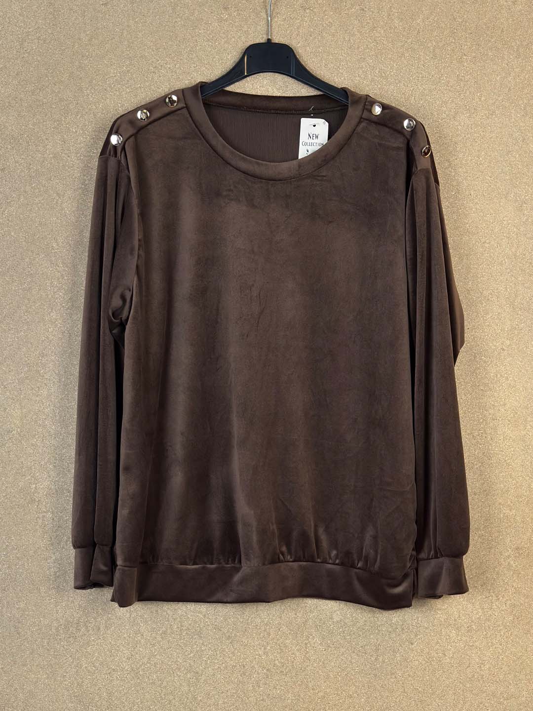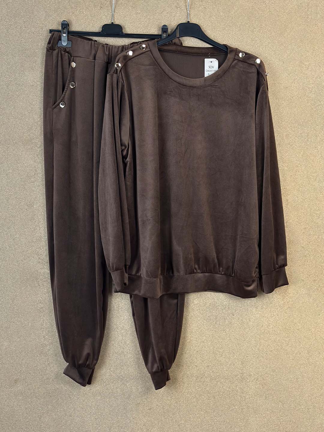 Σετ Φόρμες Βελουτέ Σοκολά Plus Size Με Χρυσά Κουμπιά
