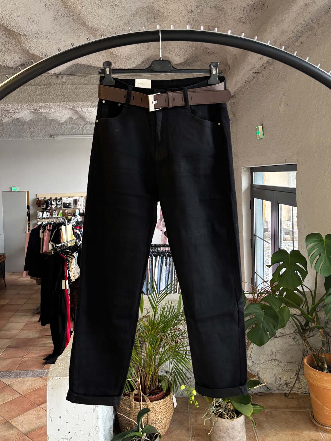 Η mom fit γραμμή δίνει μοντέρνο και χαλαρό ύφος, ενώ το μαύρο χρώμα το κάνει ακόμα πιο ευκολοφόρετο και κομψό.