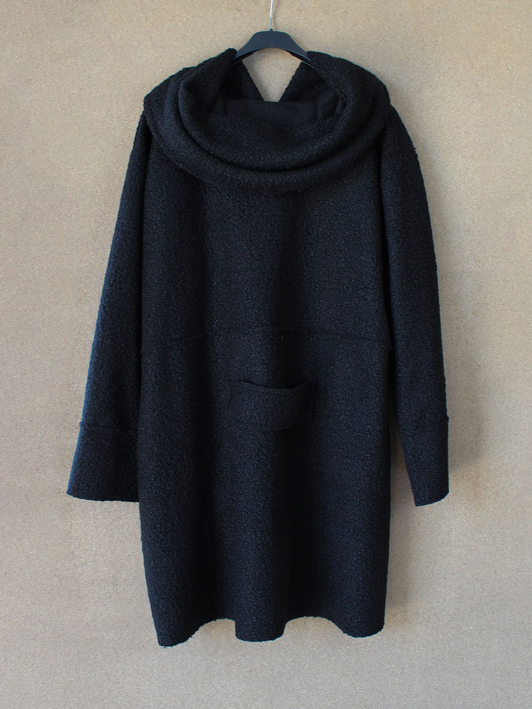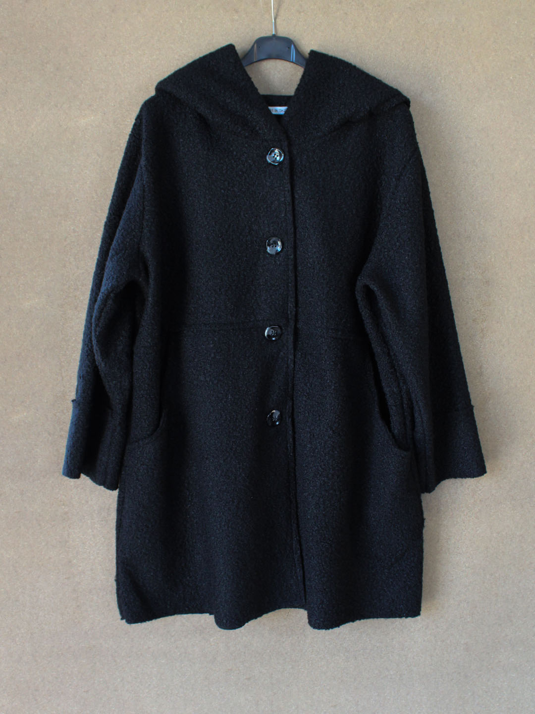 Παλτό Μπουκλέ Plus Size Over Size Με Κουκούλα Σε Μαύρο