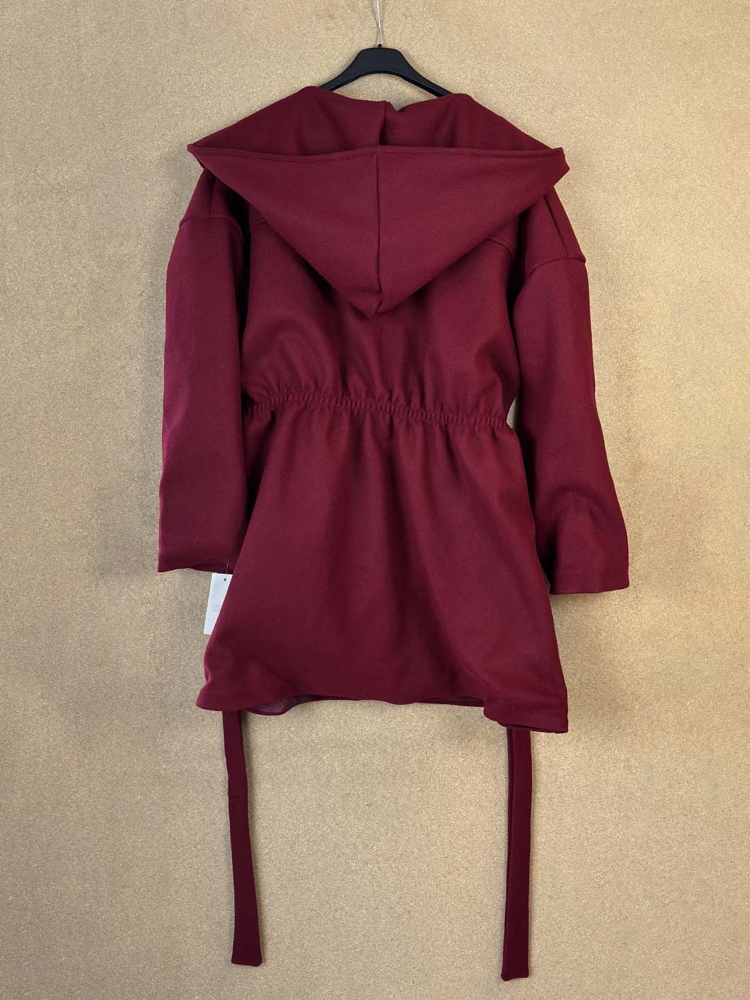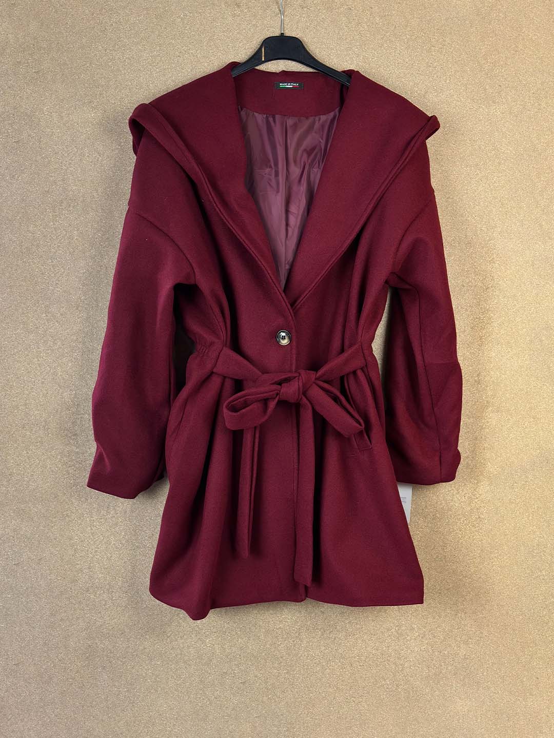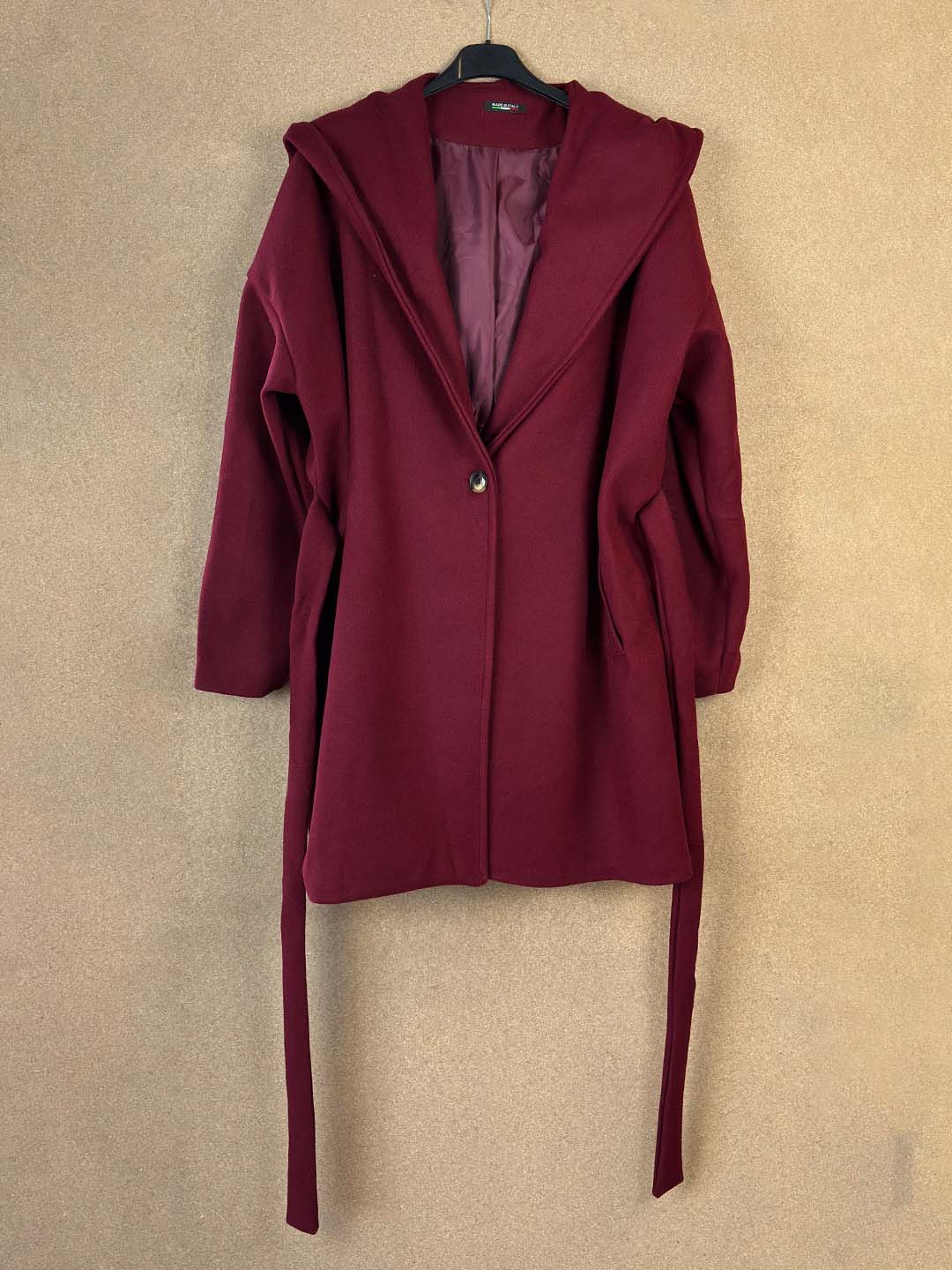 Παλτό Midi Με Κουκούλα Μεσάτο Plus Size Σε Μπορντό