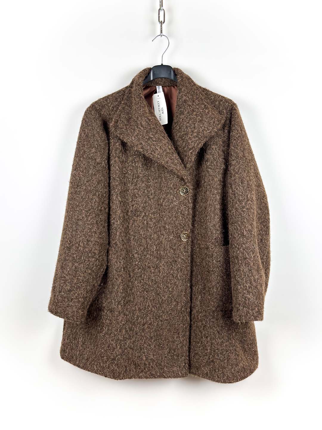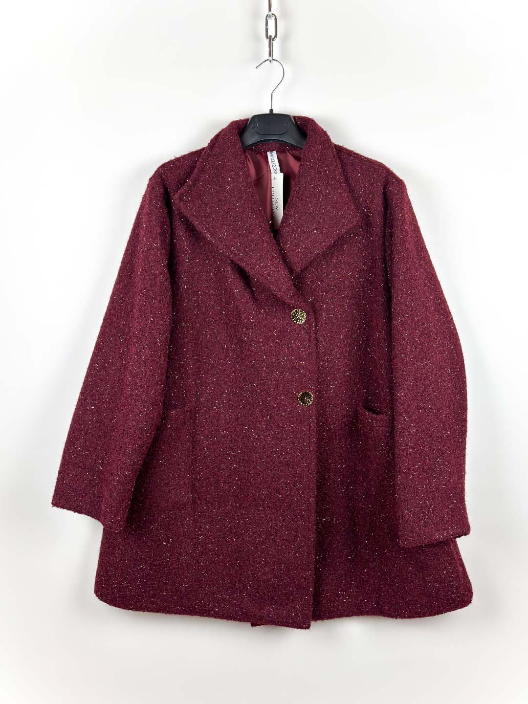 Παλτό Plus Size Μπουκλέ Με Ασημοκλωστή Και Κούμπωμα Στο Πλαι