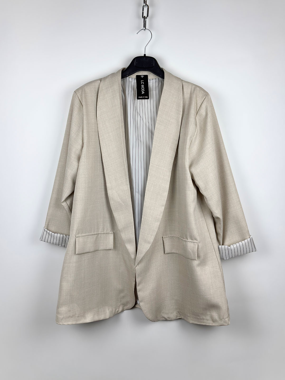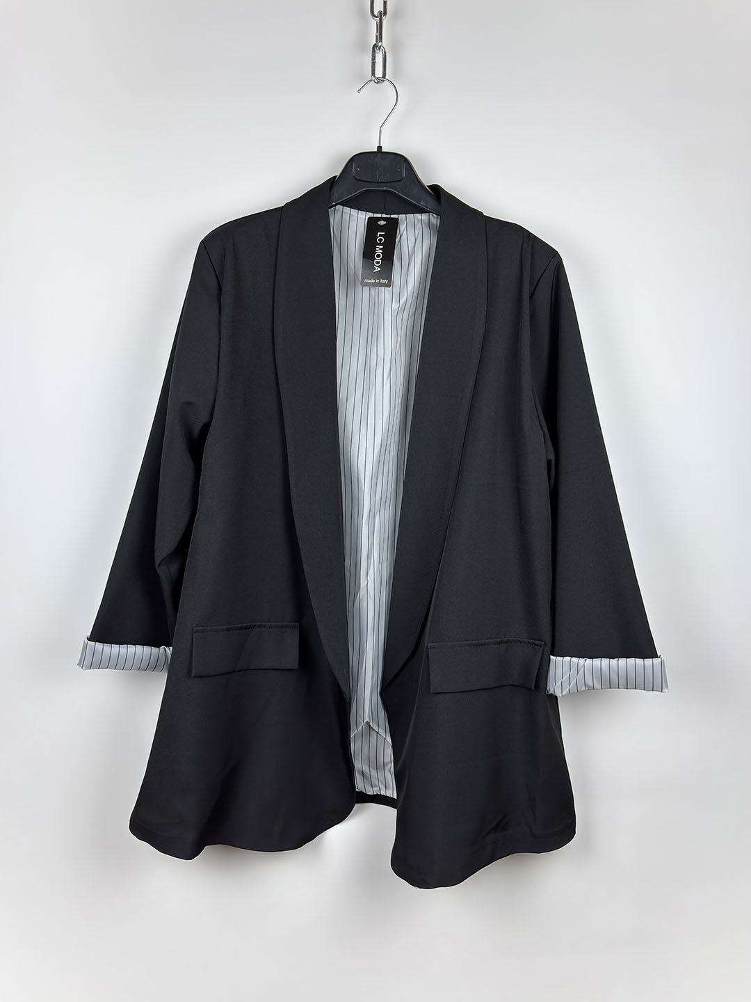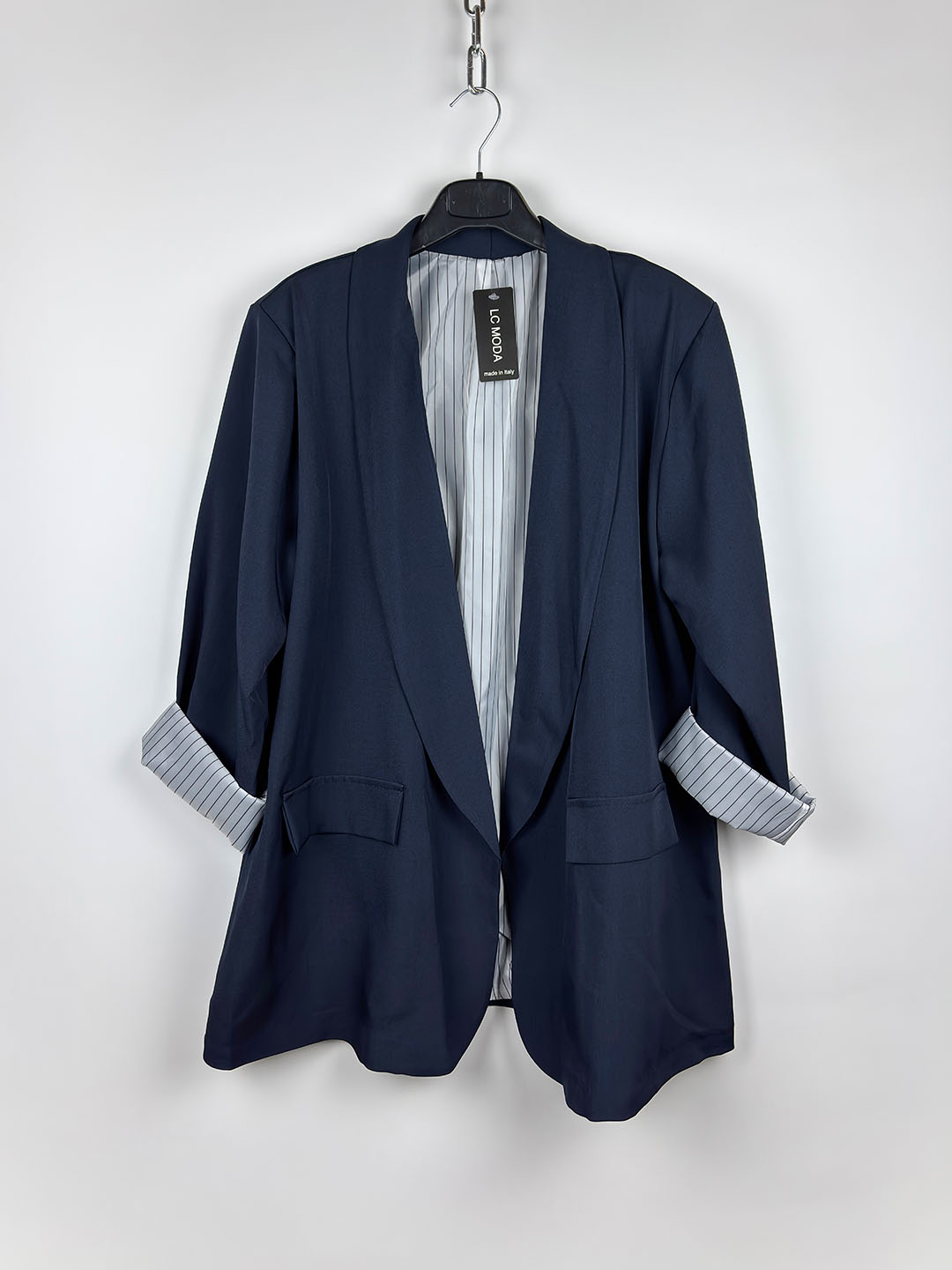 Κομψό plus size σακάκι που συνδυάζει άνεση και στυλ για καθημερινές αλλά και πιο προσεγμένες εμφανίσεις. Ο elegant σχεδιασμός του με τον ιδιαίτερο γιακά χαρίζει μια διαχρονική αισθητική που ταιριάζει εύκολα σε κάθε outfit.