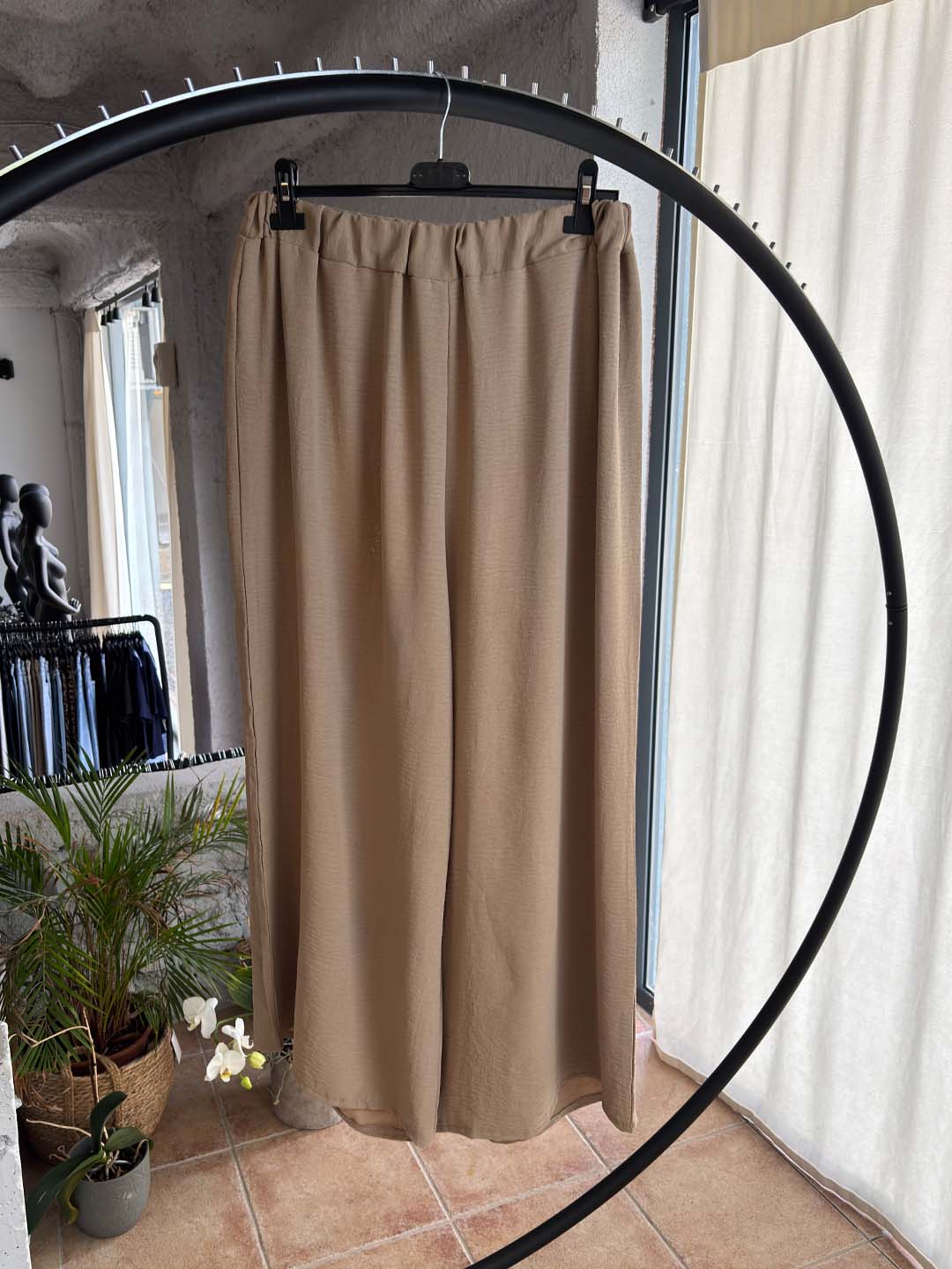 Η γραμμή είναι άνετη και αέρινη, ιδανική για καθημερινή χρήση αλλά και πιο προσεγμένες εμφανίσεις. Το παντελόνι διαθέτει λάστιχο στη μέση για τέλεια εφαρμογή και άνεση όλη μέρα.