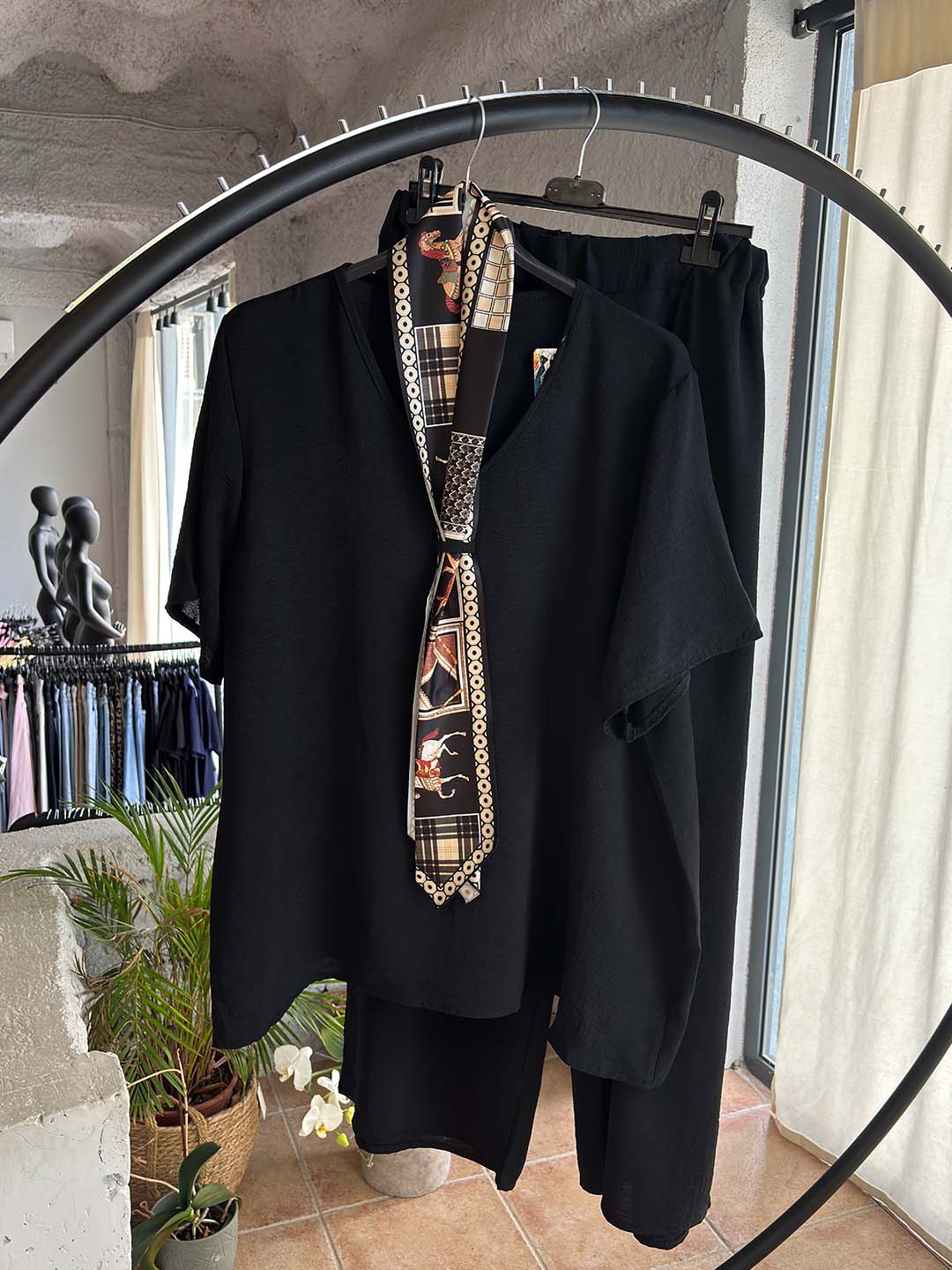 Plus Size Σετ Μπλούζα & Παντελόνα με Φουλάρι – Άνετο & Chic