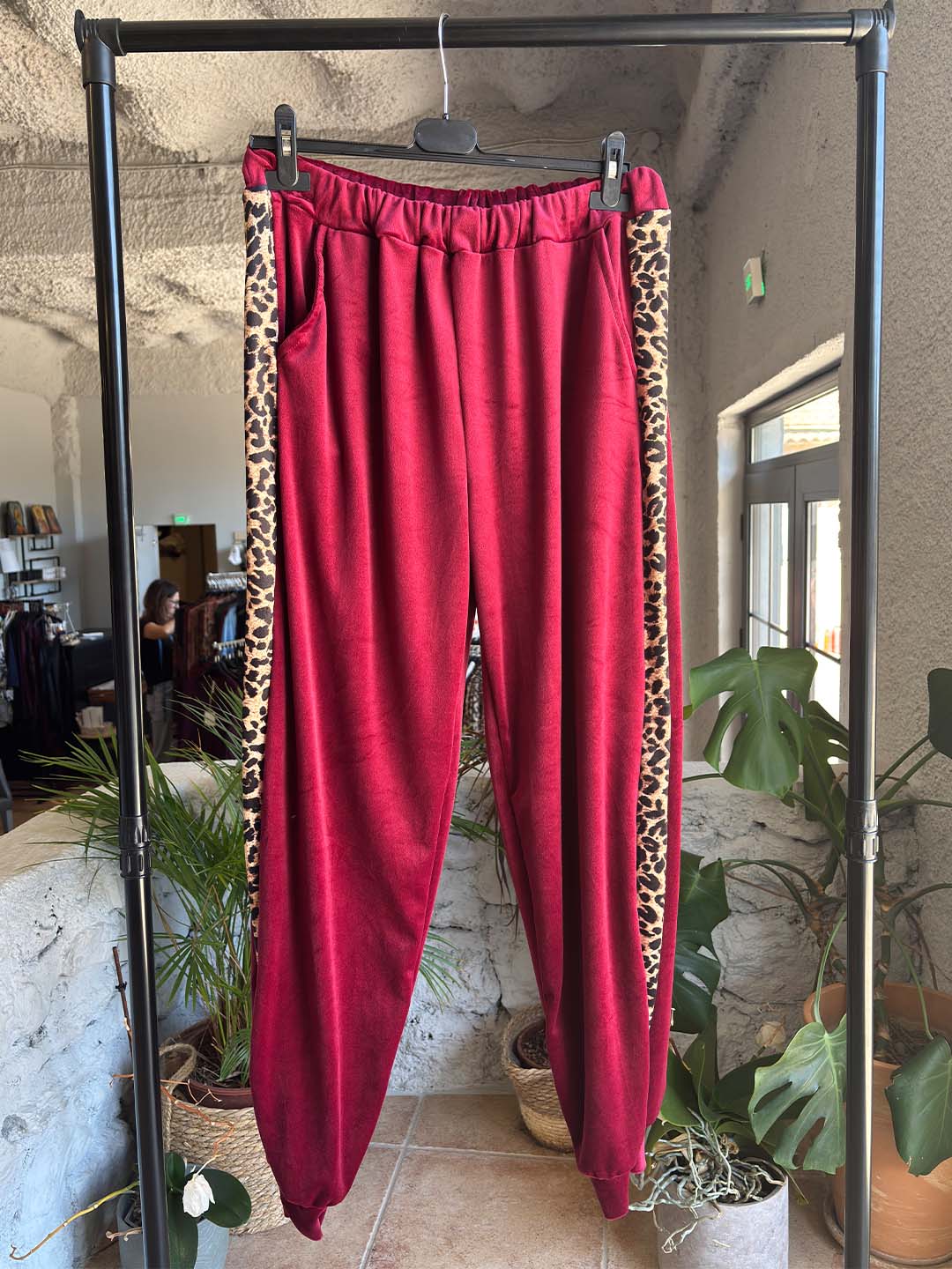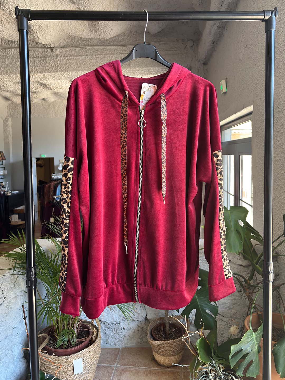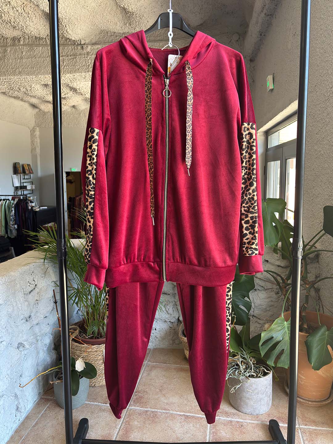 Σετ Φόρμες Μπορντό Βελουτέ Plus Size Με Ζακέτα Και Animal Print